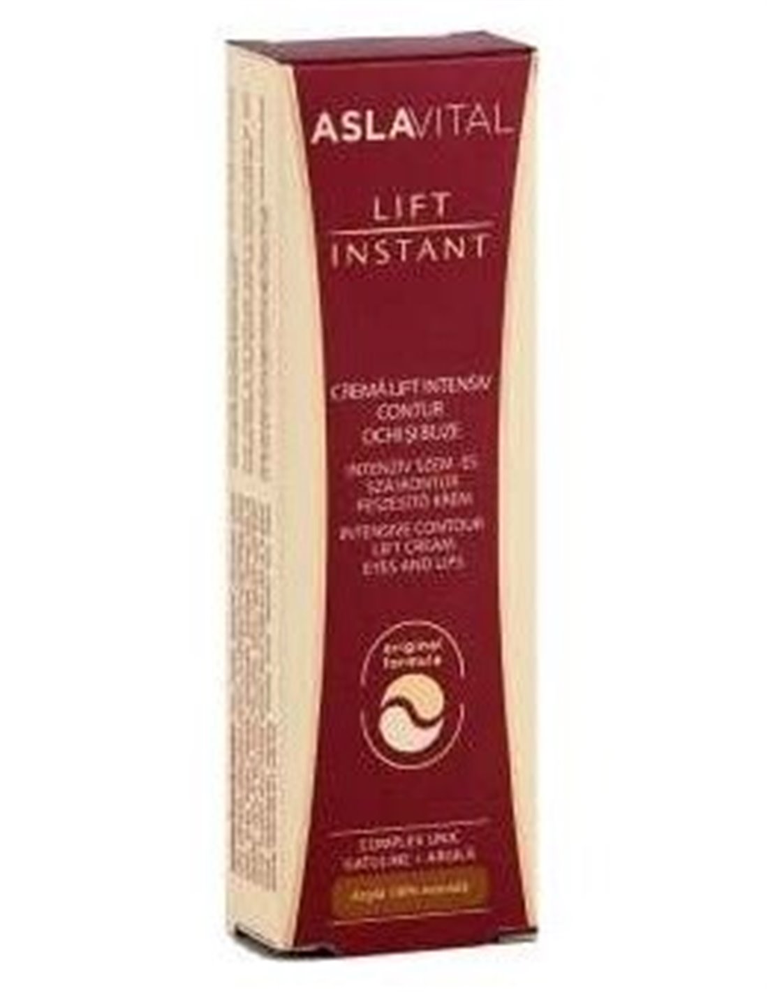 La Crema Contorno de Ojos y Labios Lift Instant de Aslavital es un producto innovador con un intenso efecto hidratante y nutritivo, de alivio y protección, con efecto lifting visible después de un solo día de la aplicación y con un efecto de regeneración celular y anti-ojeras. Efecto lift hasta un 46,31% (eficacia clínicamente probada mediante pruebas desarrolladas por el Grupo EVIC International).Ingredientes (INCI):Aqua, Squalene, Caprylic Capric Trigyceride, Cetearyl Alcohol, Propylene Glycol, Ethoxydiglycol, Propanediol, Dipalmitoyl Hydroxyproline, simondsia Chinesis Seed Oil, Glyceryl Stearate, Phenoxyethanol, Dipropylene Glycol, Sodium Polyacrylate, Dimethicone, Tocopheryl Acetate, Olus Oil, Glycerin, Ceteareth-22, Hydrogenated Polydecene, Retinyl Palmitate, Acmella Oleracea Extract, Helianthus Annuus Seed Oil, Boswellia Serrata Gum Extract, Trideceth-6, Ethylhexylglycerin, Magnesium Aluminum Silicate, Parfum, Tetrasodium EDTA, Ferulic Acid, BHA, Methylsilanol Mannuronate, PEG-40 Hydrogenated Castor Oil, Oryza Sativa Bran Oil, BHT, Calendula Officinalis Flower Extract, Sorbic Acid, Sodium Hydroxide, Tocopherol.Modo de empleo:Aplicar por la mañana y por la noche en las zonas más afectadas, sobre la piel limpia, masajeando suavemente con movimientos circulares hasta su total absorción.Presentación:Envase de 15 ml.