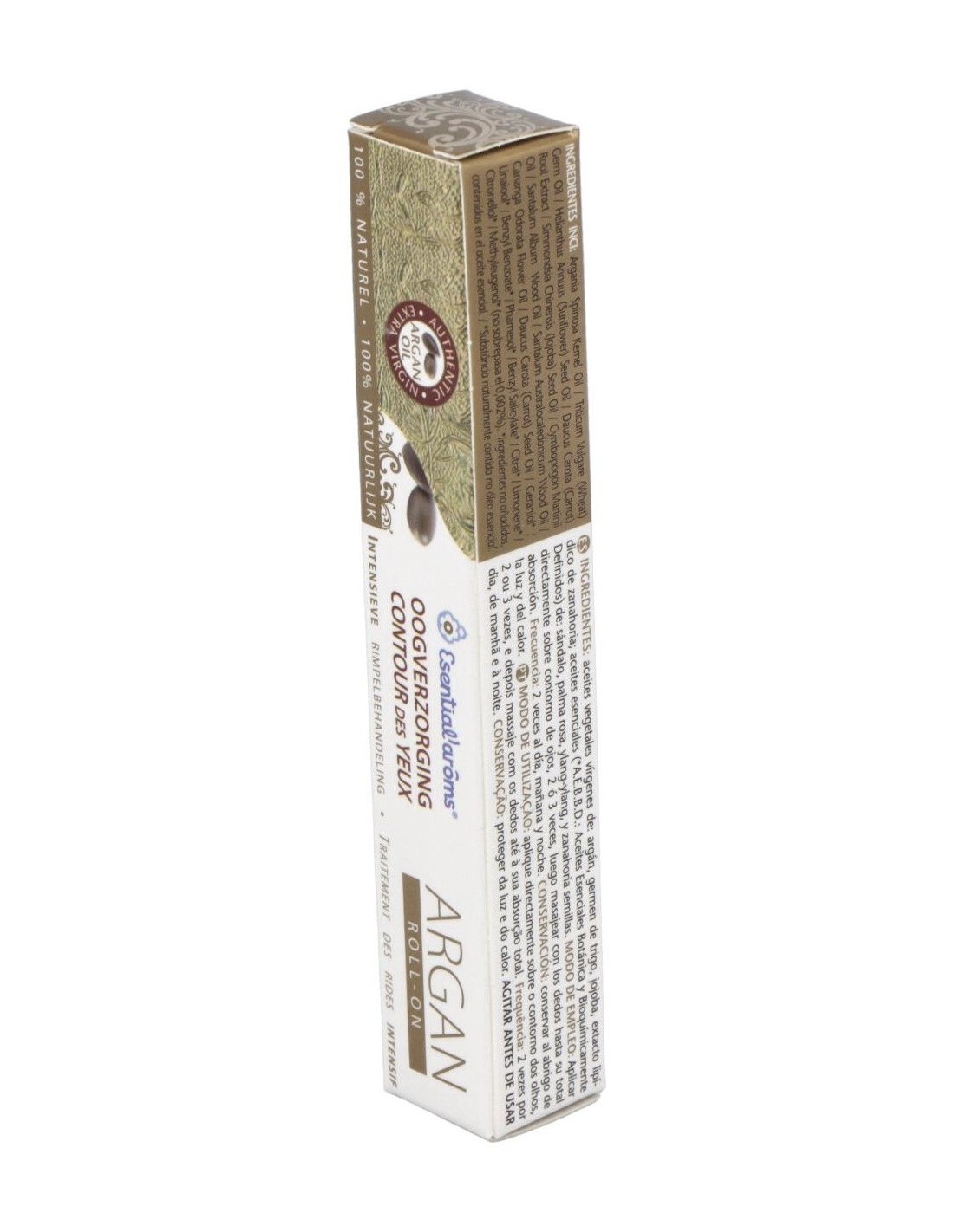 Roll-On Contorno de Ojos de Argán de Esential'Aroms tratamiento intensivo Roll-On antiarrugas. Actúa previniendo y tratando las arrugas del contorno de los ojos, mejora la microcirculación y disminuye el tono de las ojeras.Propiedades e indicaciones: