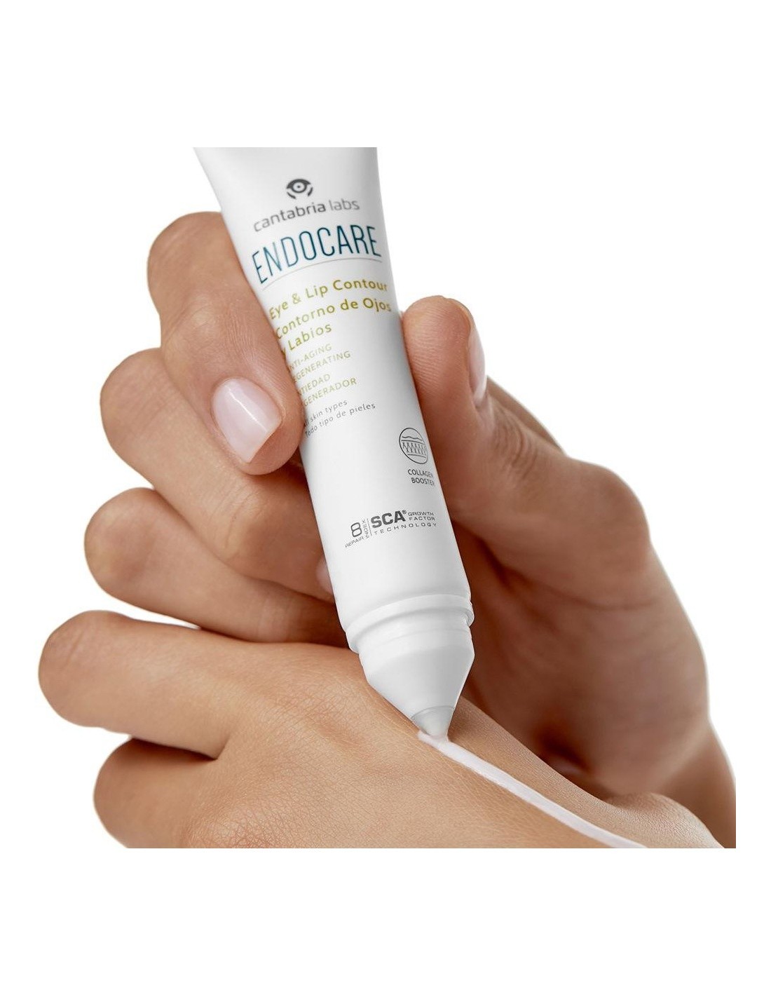 Endocare contorno de ojos y labios 15ml contiene ingredientes indicados para combatir el fotoenvejecimiento avanzado, causante de ojeras, bolsas o falta de firmeza en la piel, así como de la aparición de las primeras arrugas de expresión. También ayuda a mitigar las molestias de la piel como el picor, en enrojecimiento o la quemazón debidos a un tratamiento de rejuvenecimiento periocular avanzado.