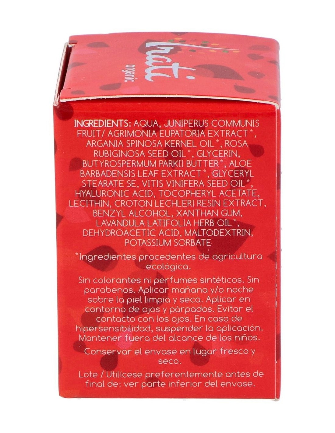 Este contorno de ojos utiliza ingredientes de origen natural certificados por Irati Organic, garantizando un producto con enfoque en la pureza y el respeto por la piel. Su diseño en envase compacto permite una dosificación controlada, facilitando su aplicación precisa en la zona periocular.