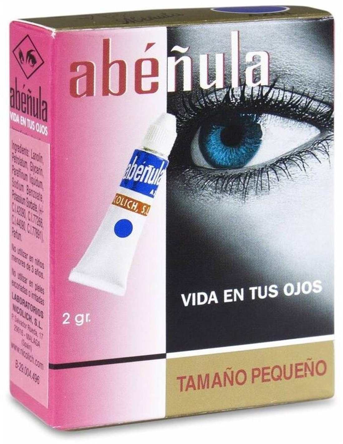 Abéñula azul es un maquillaje para ojos con una base de la crema estrella Abéñula Blanca, conservando todos sus beneficios para ojos y pestañas. Da color a los ojos, consigue una mirada luminosa y atractiva, a la vez que nutre y fortalece las pestañas. Con su base de aceites minerales, proporciona un excelente efecto lubricante, dando a los ojos un extraordinario brillo, revitalizando las pestañas y evitando su caída.