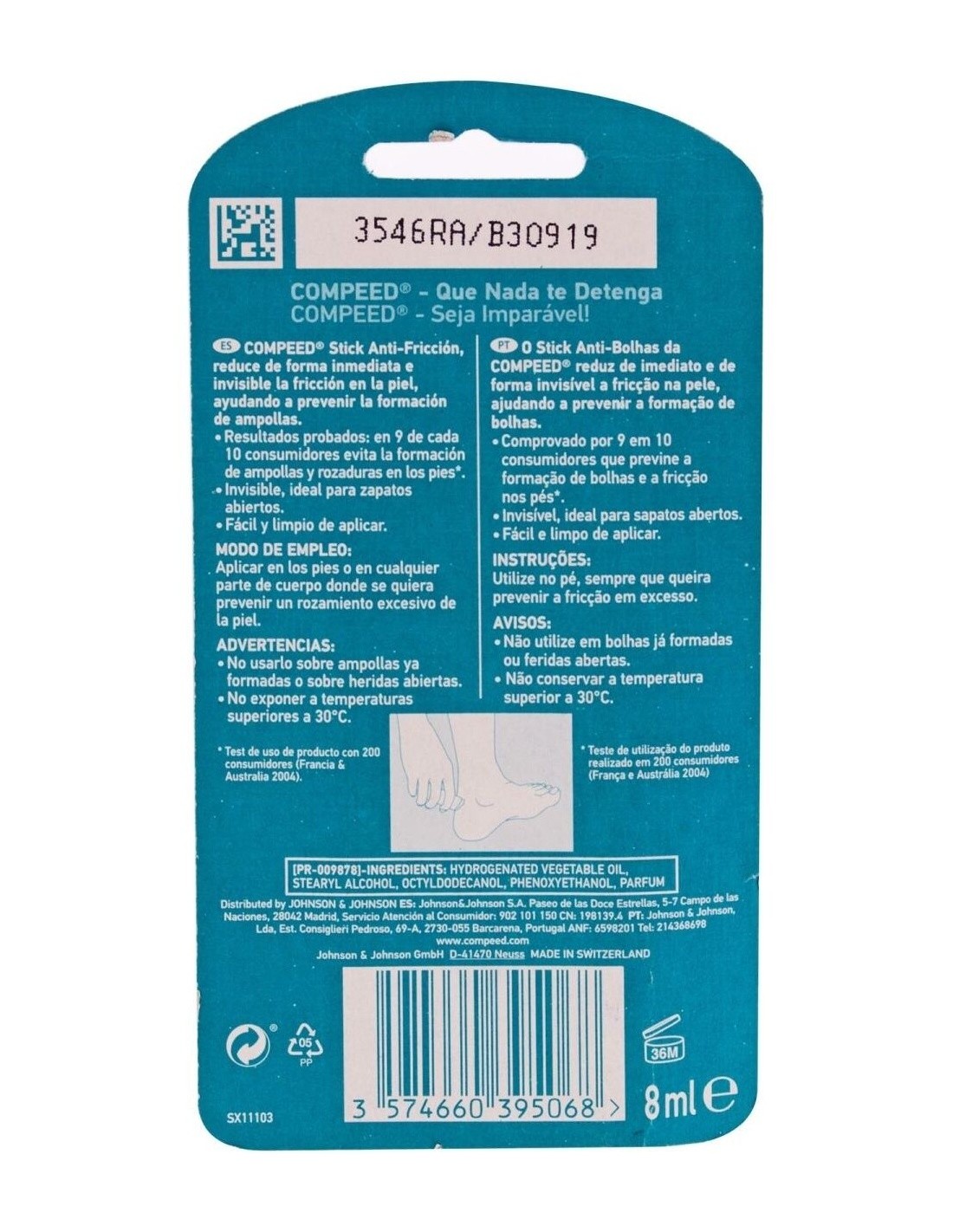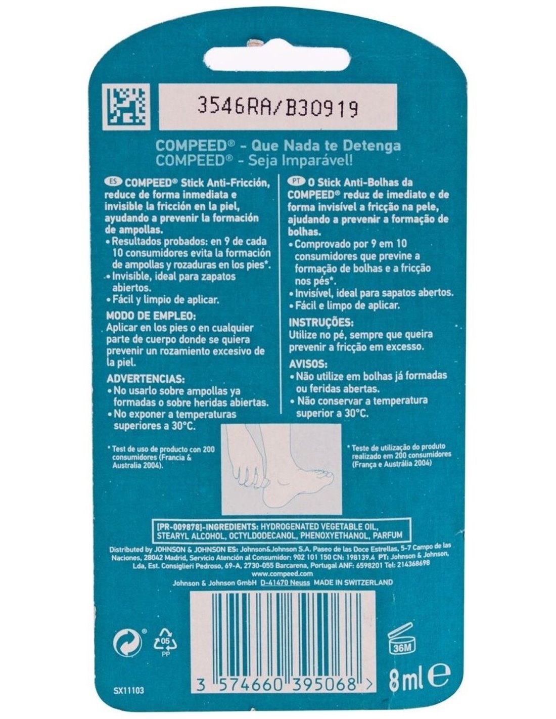 Compuesto por un aceite vegetal hidrogenado, disminuye de forma invisible y eficaz la fricción en los pies. Con su aplicación directamente en los zapatos o pies se puede obtener protección de los rozamientos y notar resultados con rapidez.