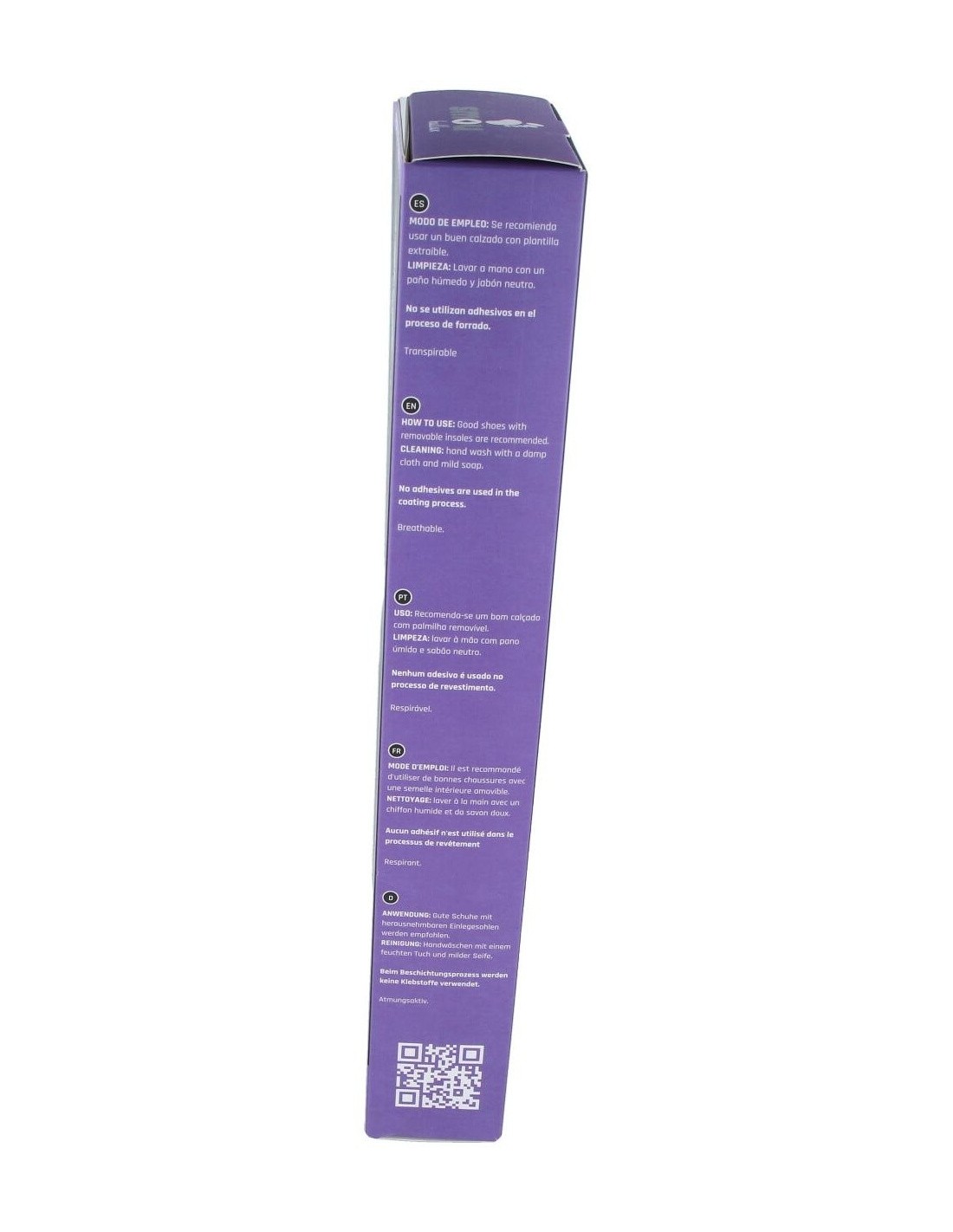 Plantillas moldeadas con arco interno de compensación, doble refuerzo en el primer dedo y bóveda retrocapital/metatarsal. Base entera de resina, memory foam y forro de microfibra absorbente.