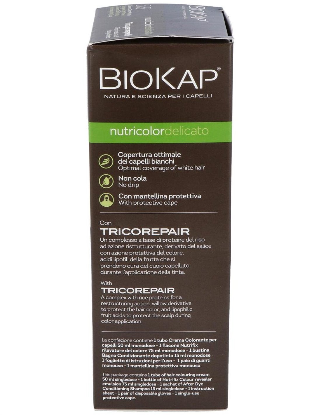 Delicato 5.50 Castaño Claro Caoba 140 ml de Biokap ofrece una opción equilibrada para quienes desean renovar su color con un tono cálido y cuidado.