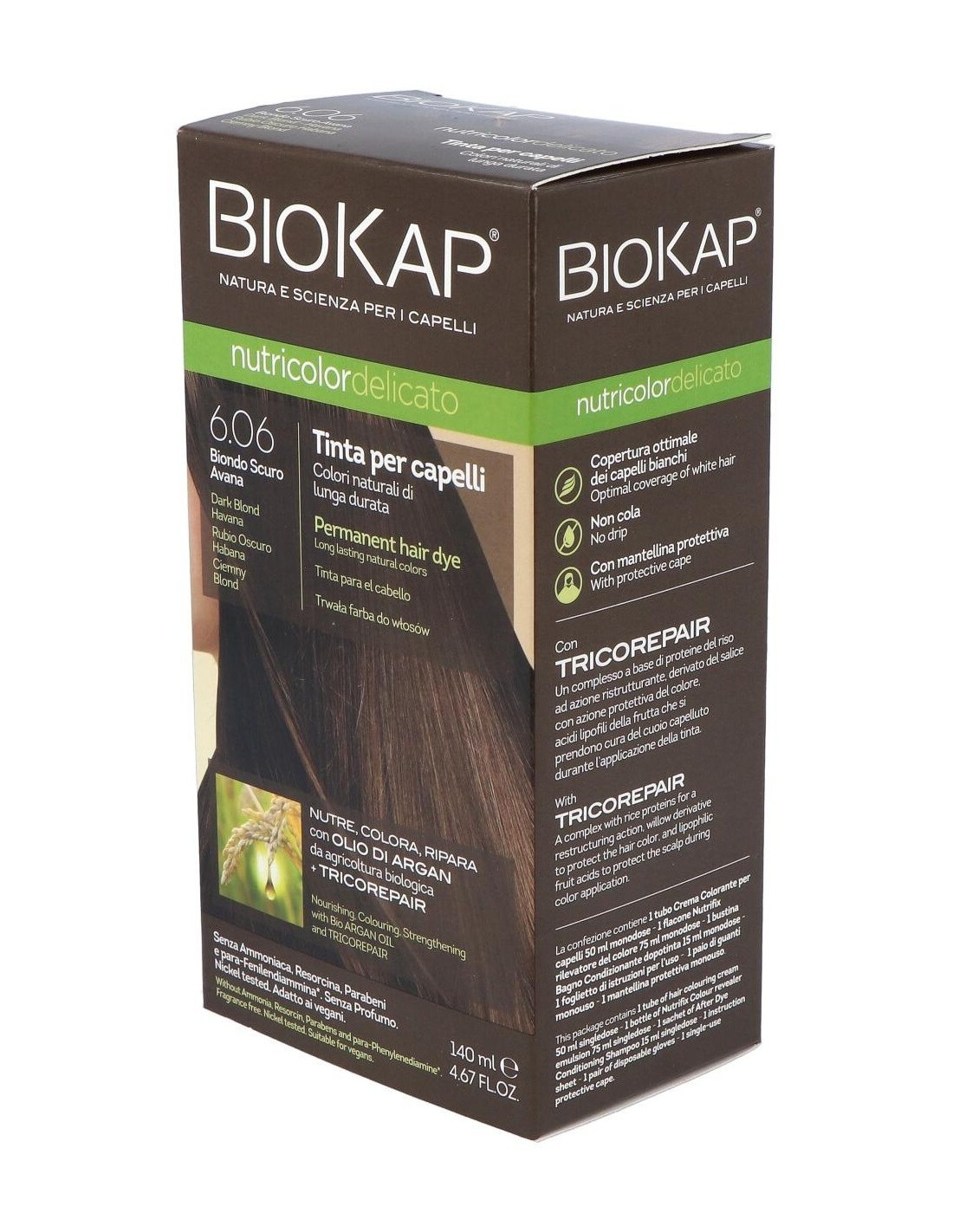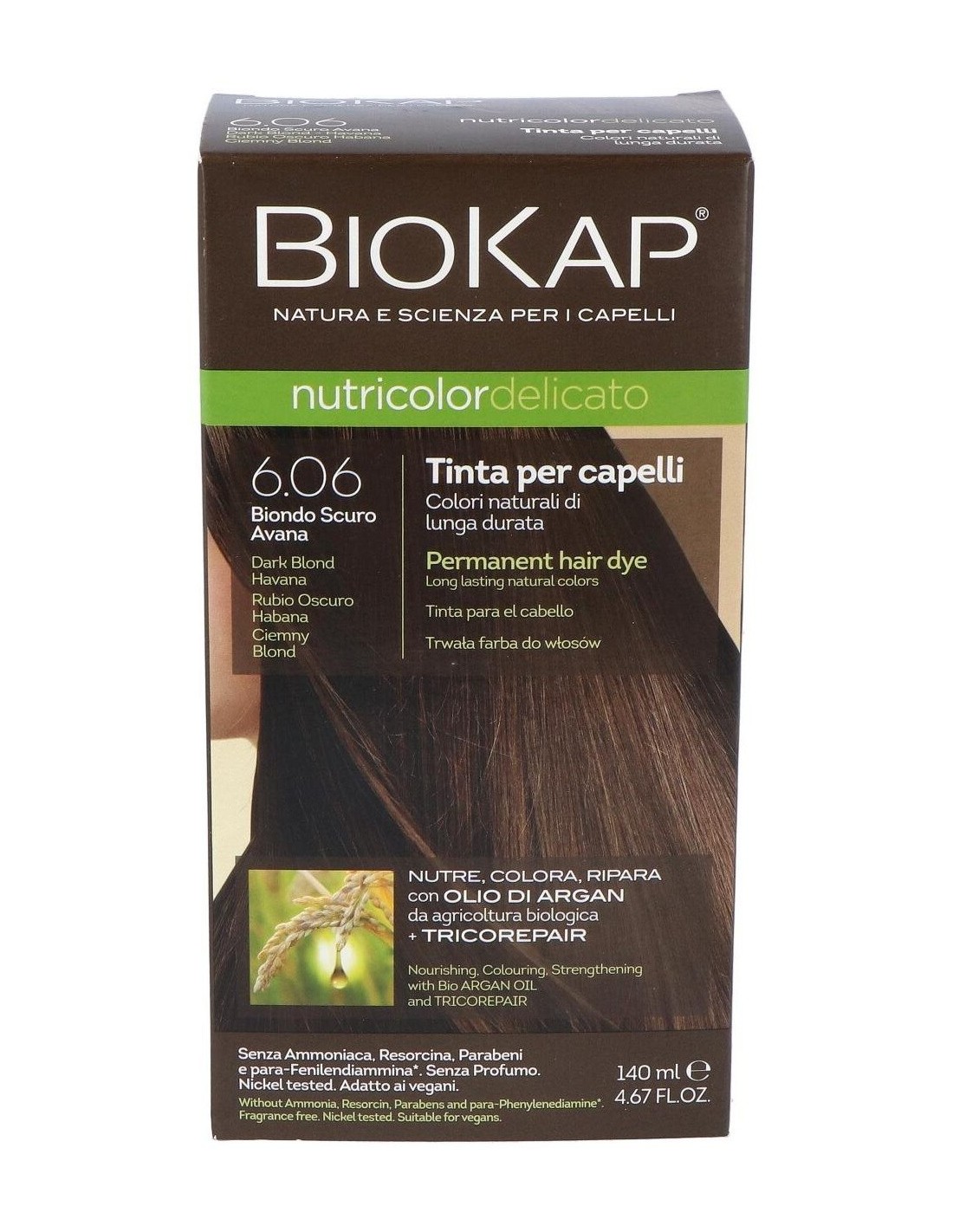 Delicato 6.06 Rubio Oscuro Habana 140 ml de Biokap ofrece una opción para quienes buscan un tono rubio oscuro con un acabado natural y cuidado del cabello.