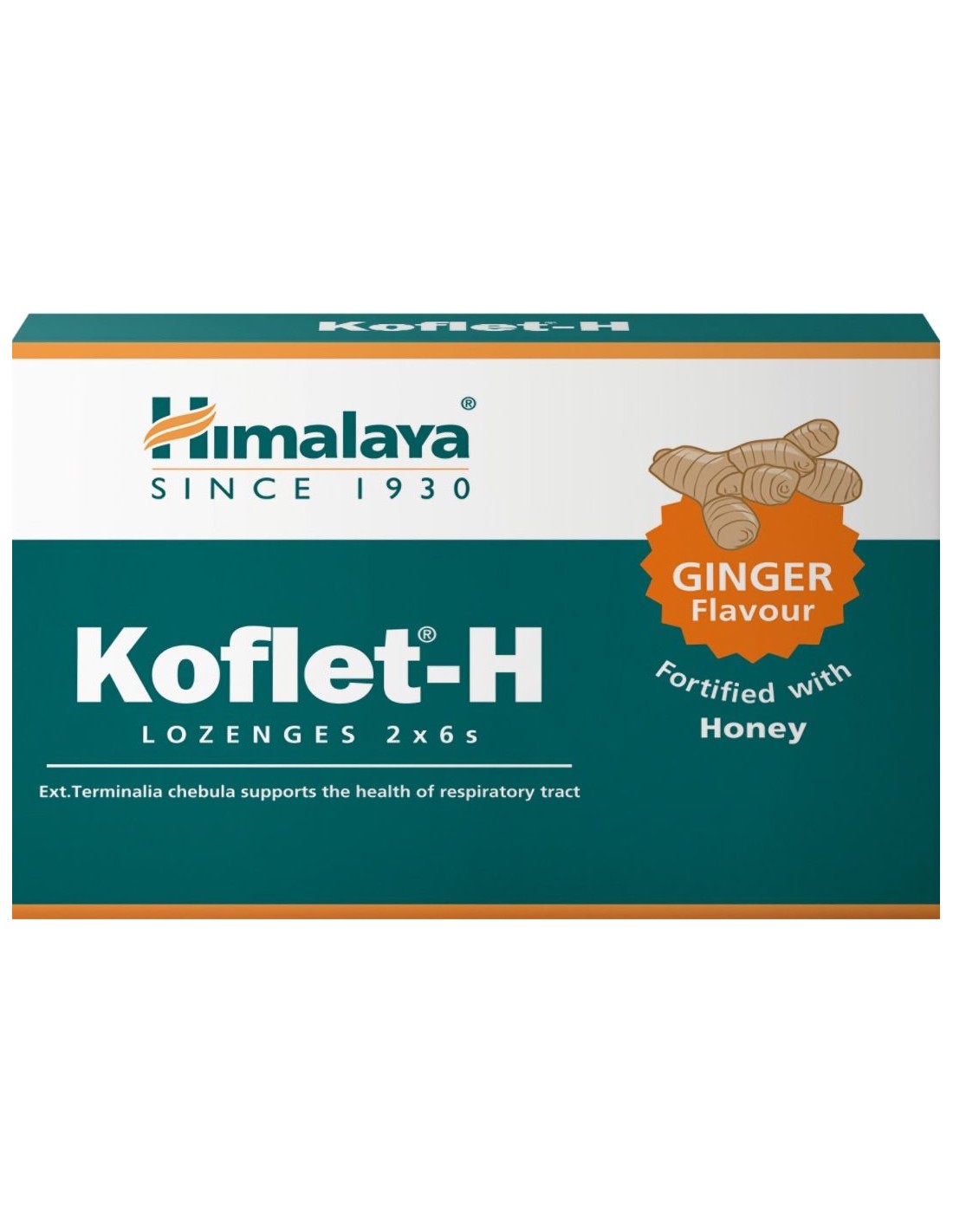 Koflet-H jengibre Himalaya es beneficioso para combatir la tos seca y productiva. Reduce la irritación de la mucosa bronquial. Las propiedades antiinflamatorias de Koflet-H reduce la inflamación del tracto respiratorio superior.La misión de Himalaya es llevar el bienestar de los productos a base de hierbas a todos los hogares. Nuestra selección de complementos alimenticios a base de hierbas está especialmente formulada para ayudarle a alcanzar un bienestar físico y mental, así como para mejorar su calidad de vida.Ingredientes:Sacarosa, Glucosa líquida, Agua purificada, Aroma de jengibre, Extracto de fruta de almendra de Chebul (Terminalia chebula), Mentol, Aceite de botones florales de clavo (Syzygium aromaticum), Extracto de rizoma de cardamomo silvestre (Alpinia galanga), Extracto de rizoma (Zingiber officinale), Extracto de fruta de pimienta larga (Piper longum), Extracto de fruta de pimienta negra (Piper nigrum), Extracto de duramen de acacia catechu (Acacia catechu), Aceite de fruta de cardamomo de malabares (Elettaria cardamomum), Aceite de corteza de canela Ceilán (cinnamomum zeylancium).Modo de empleo:Tomar 1 pastilla 3 ó 4 veces al día.Presentación:Envase de 12 pastillas para chupar sabor jengibre.Recomendaciones y advertencias:100% vegetariano.