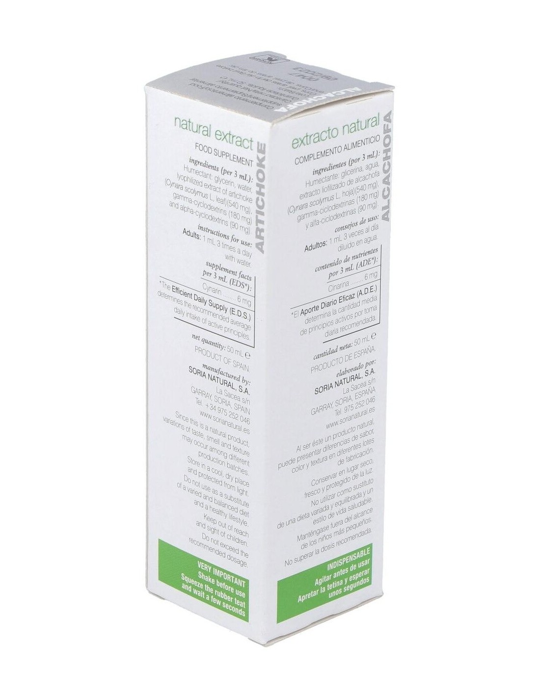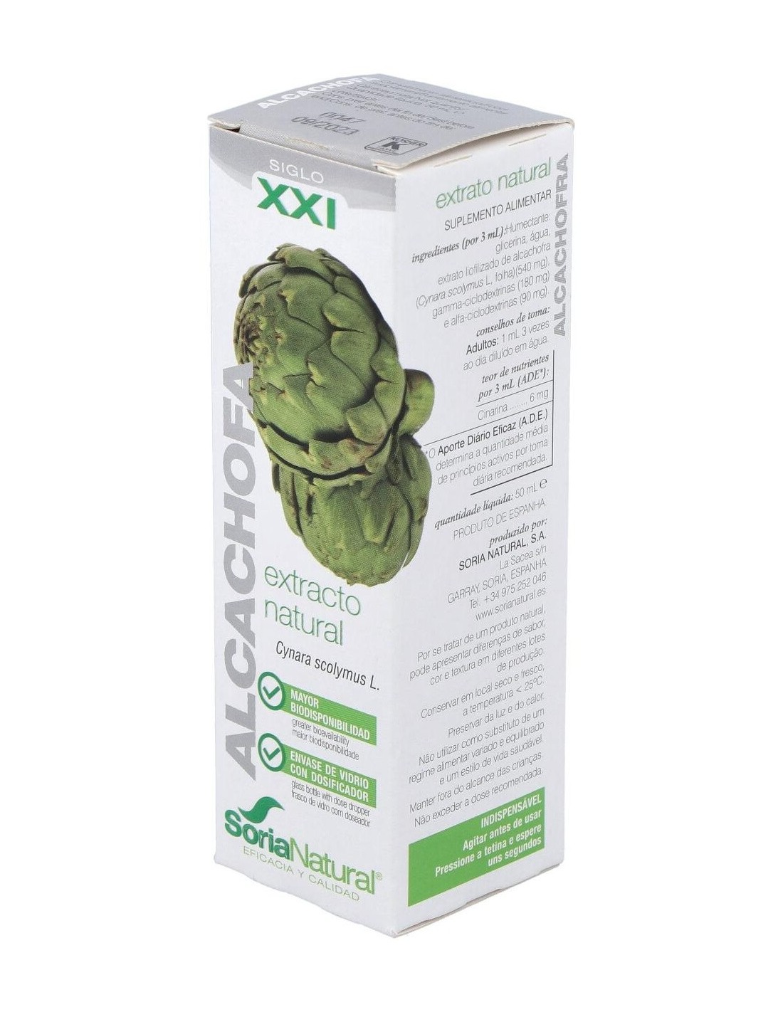 El Ext. Alcachofa Xxi 50Ml. S/Al de Soria Natural es un complemento elaborado para personas interesadas en productos naturales que apoyan su bienestar diario. Su formulación está diseñada para integrarse fácilmente en rutinas de cuidado personal, aportando ingredientes derivados de la alcachofa.