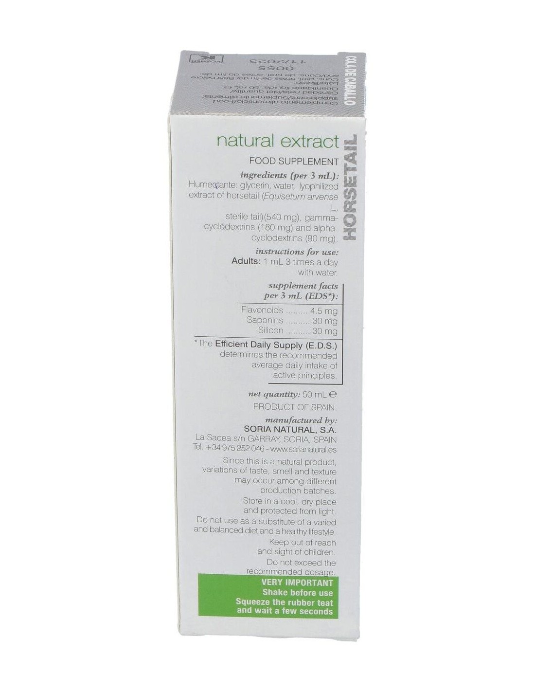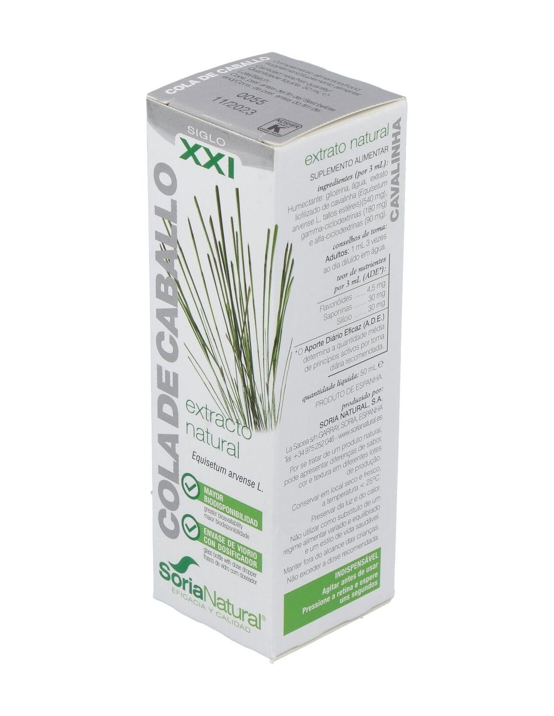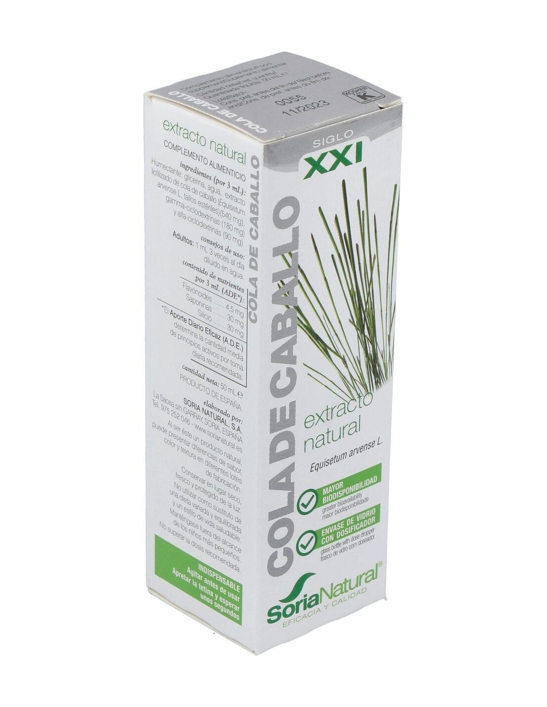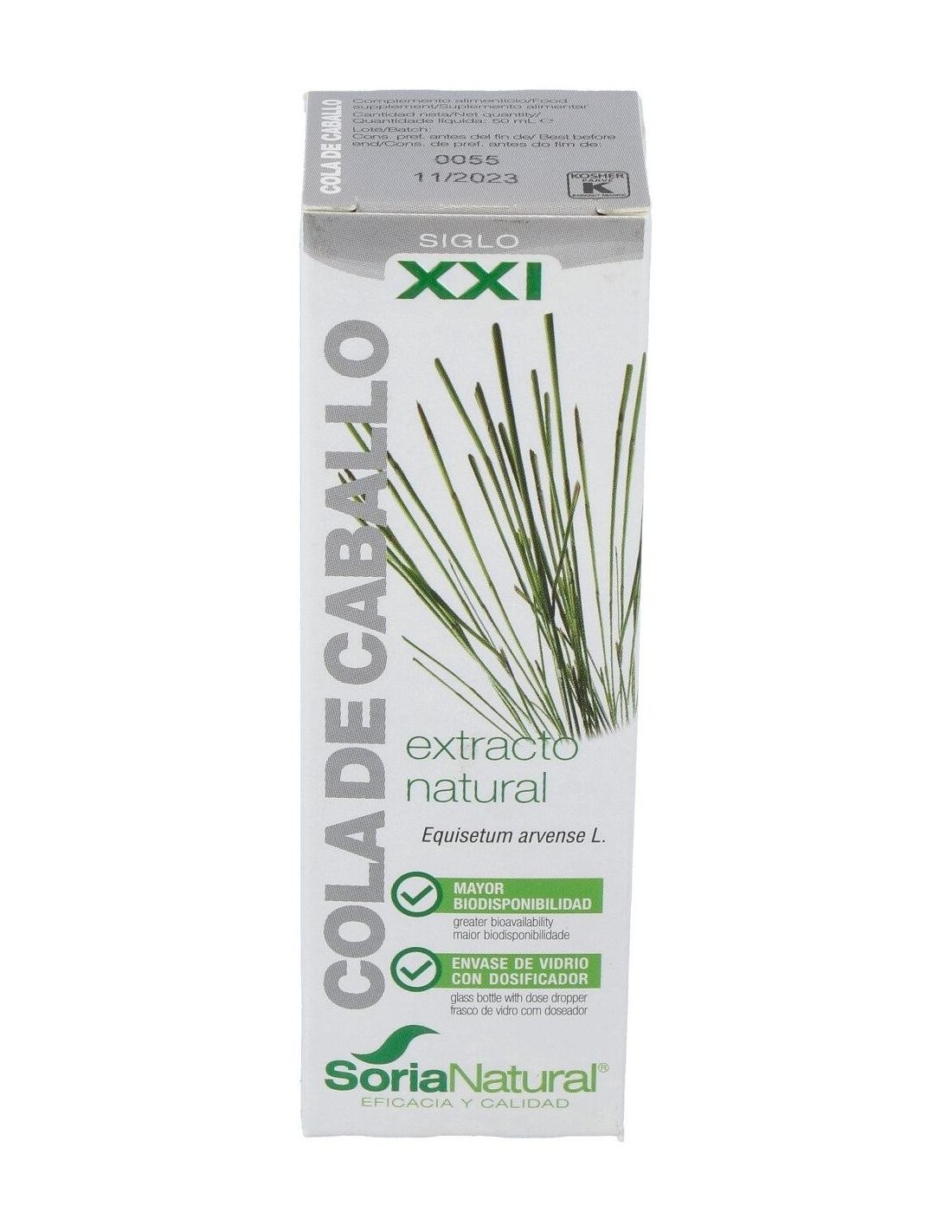 El Extracto de Cola de Caballo XXI 50 ml de Soria Natural es un complemento pensado para personas que buscan incorporar ingredientes de origen vegetal en su rutina diaria. Su formulación está orientada a quienes valoran productos naturales con una presentación práctica y dosificada.