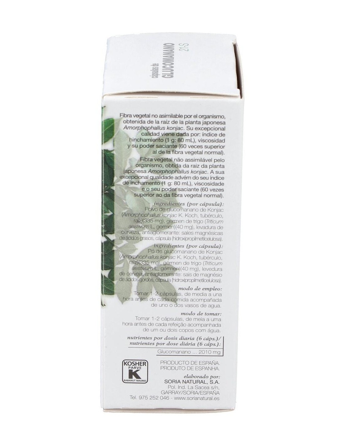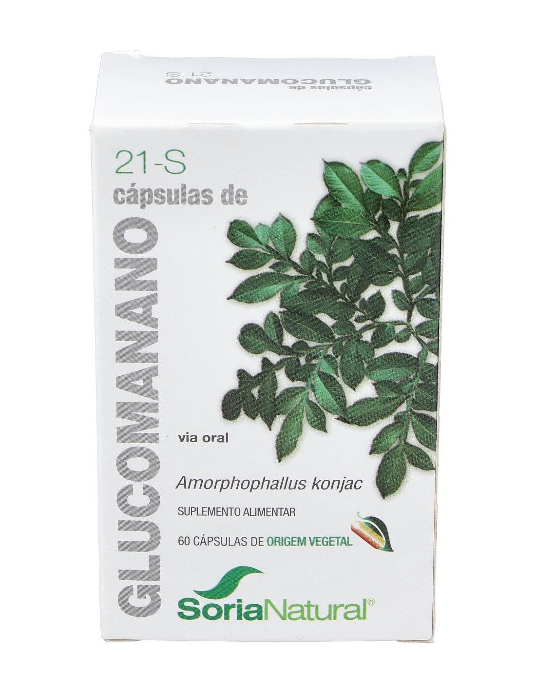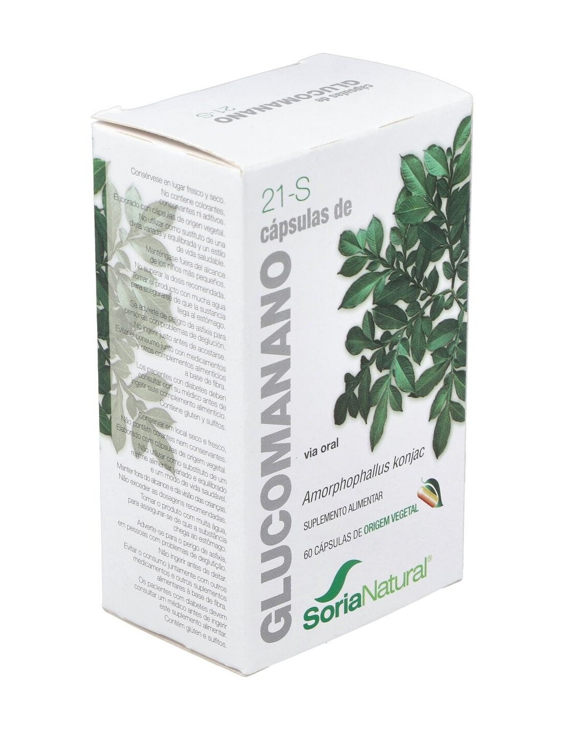 21-S Glucomanano de Soria Natural es un complemento alimenticio con fibra vegetal no asimilable por el organismo, obtenida de la raíz de la planta jap