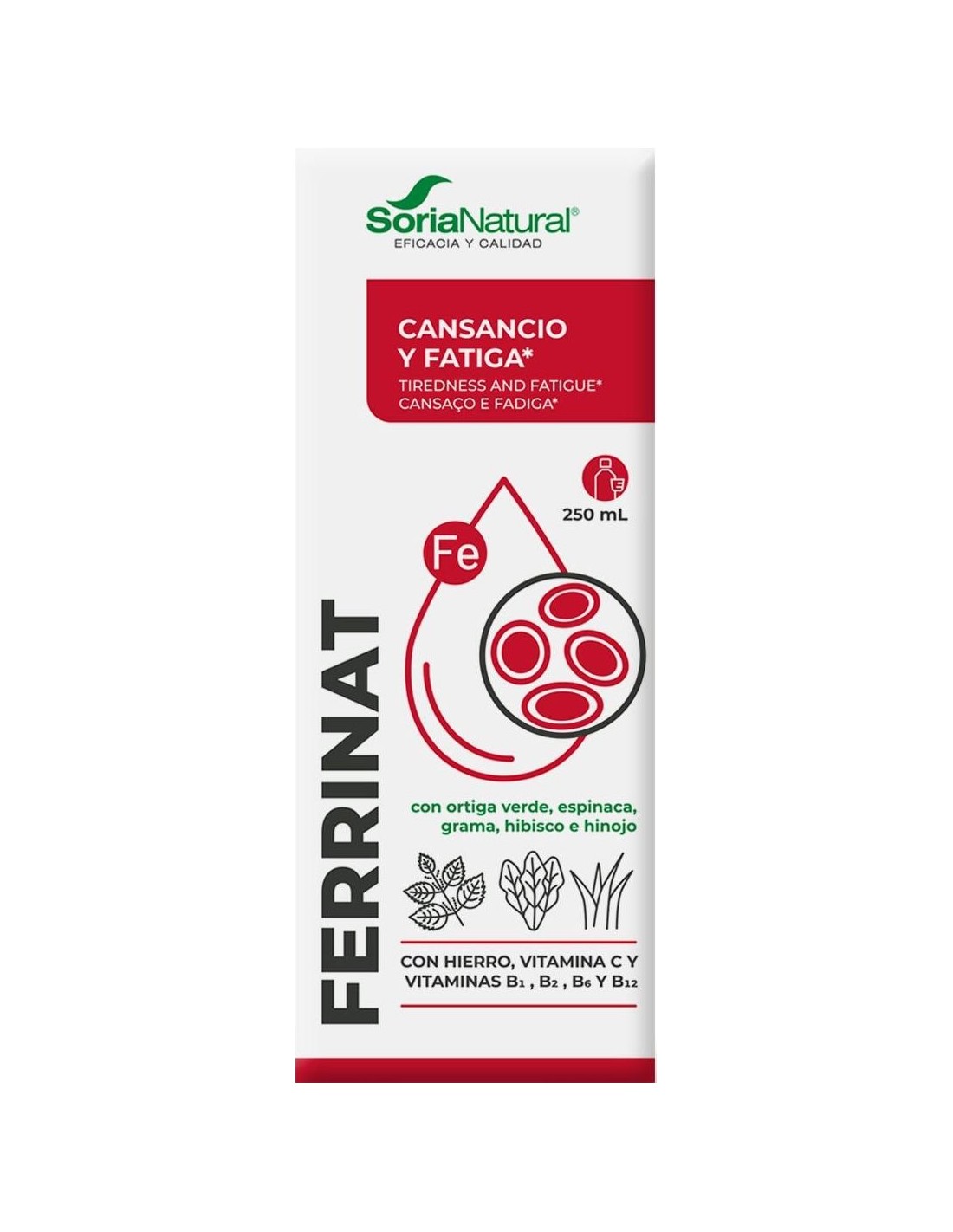 Ferrinat 250 Ml. de Soria Natural es un complemento alimenticio diseñado para personas que buscan apoyar su bienestar diario mediante una fórmula equilibrada. Es adecuado para quienes desean incorporar un aporte específico de hierro en su rutina habitual.