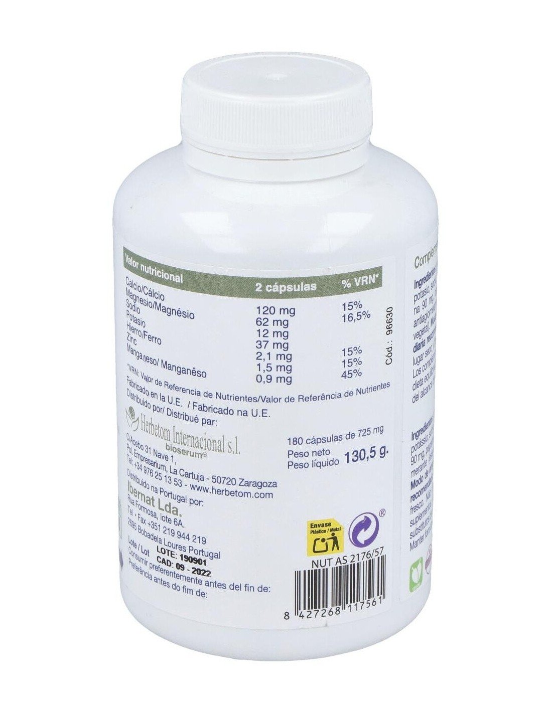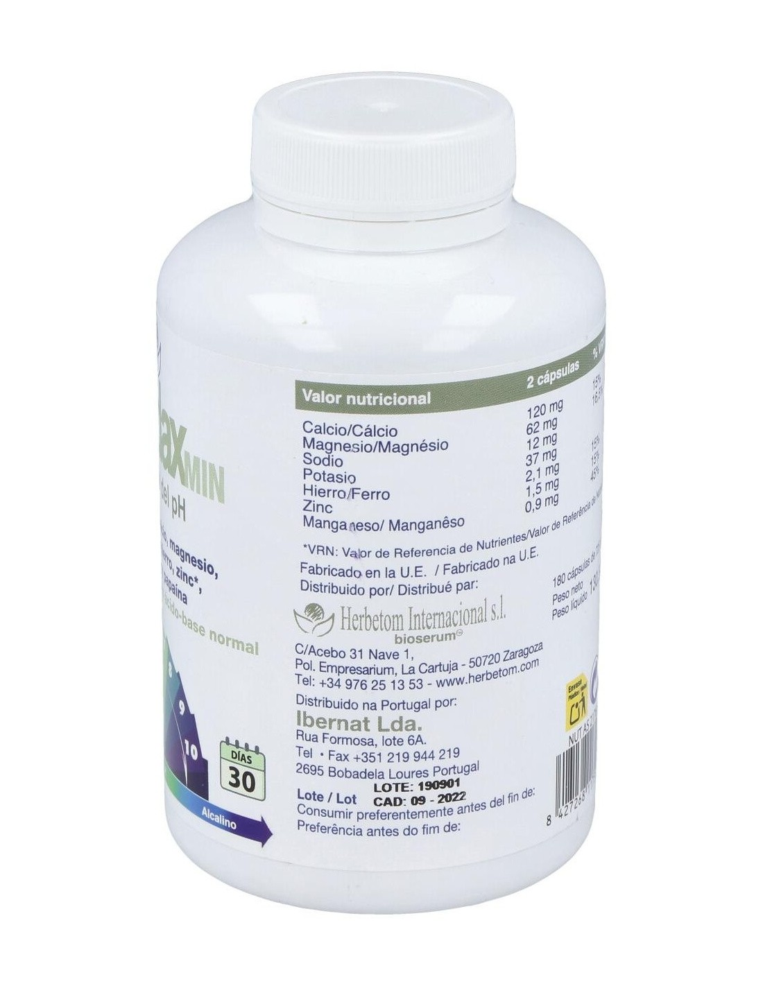 Herbetom Boondax Min 180 cápsulas ayuda a equilibrar la relación ácido-base. Alcalinización de la dieta.