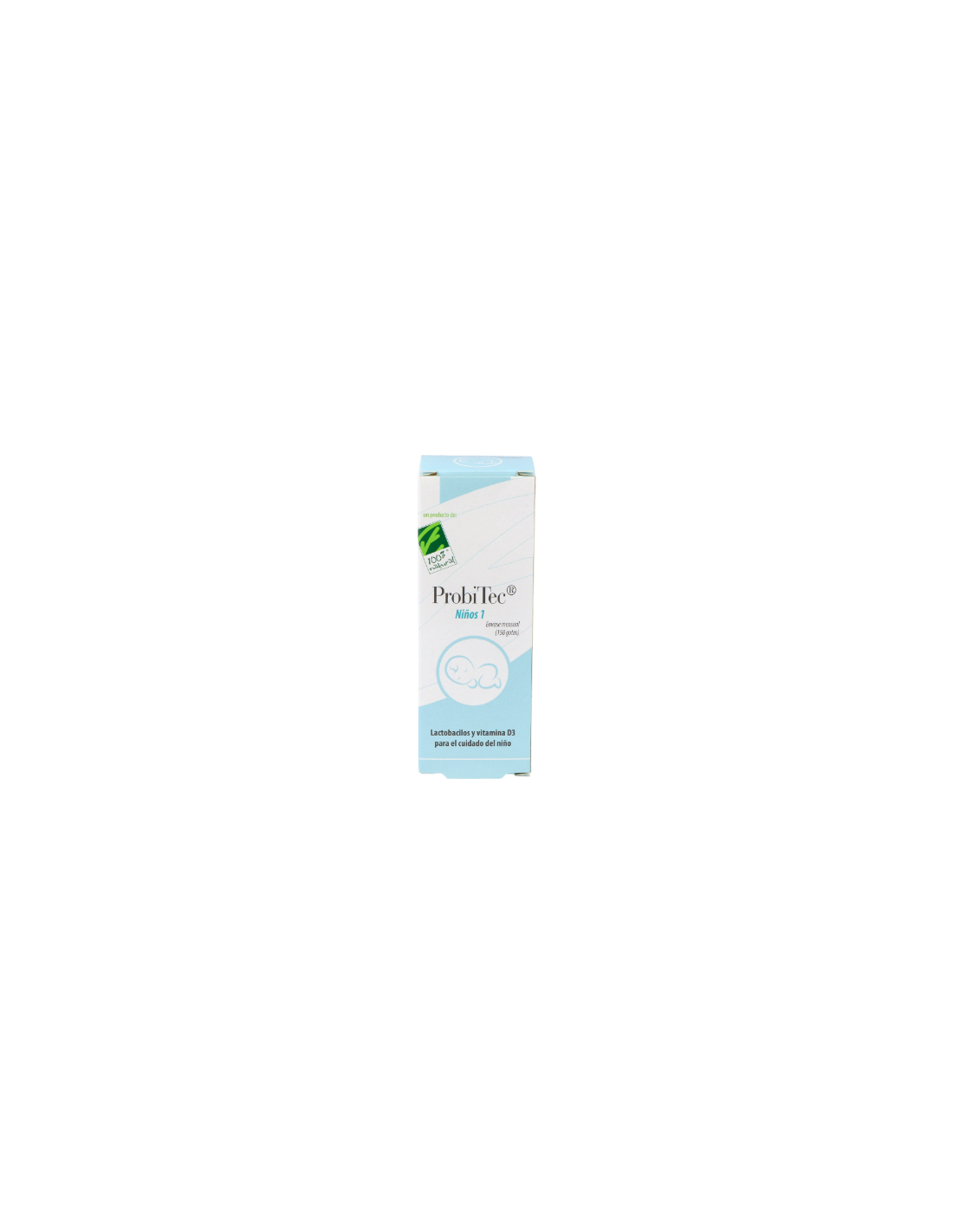 100% Natural Probitec Niños 1 7,5ml (30 dosis de 0,25ml) es un complemento alimenticio con lactobacilos y vitamina D3 para el bienestar de los niños. La vitamina D colabora al desarrollo de dientes y huesos sanos, y al funcionamiento normal del sistema inmune en los niños.