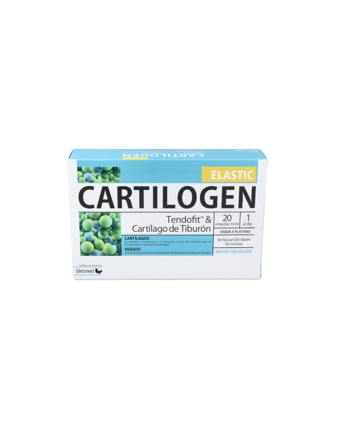 Cartilogen Elastic 20Amp. de Dietmed ofrece una opción formulada para apoyar la salud articular con un enfoque en la flexibilidad y el confort durante las actividades cotidianas.