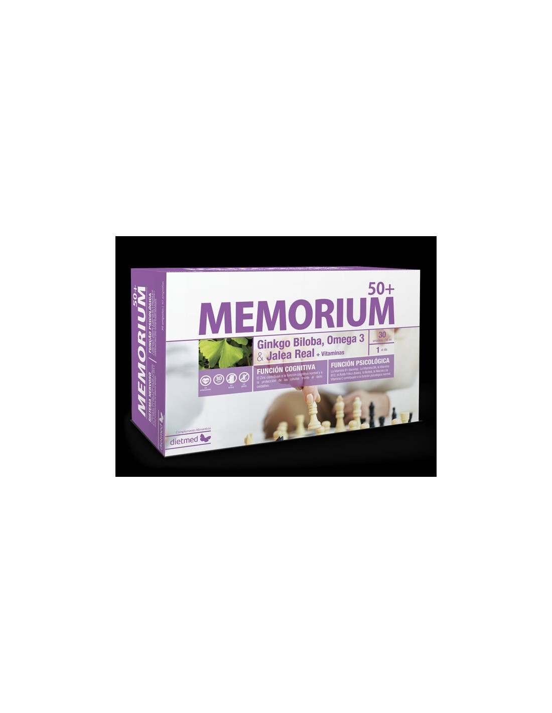 Memorium 50+ 30Amp. de Dietmed es un suplemento dirigido a personas mayores de 50 años, que apoya la función cognitiva y el bienestar mental mediante una fórmula específica de nutrientes.