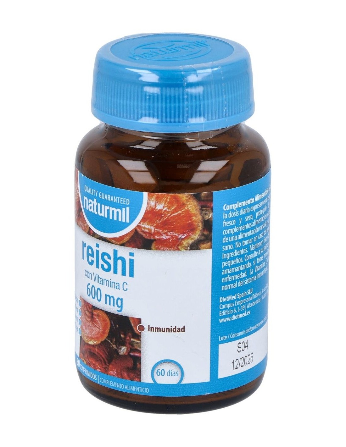 El Reishi 600Mg con Vitamina C 60Comp. de Dietmed es un suplemento para adultos que aporta apoyo al bienestar general mediante la combinación de extracto de reishi y vitamina C.