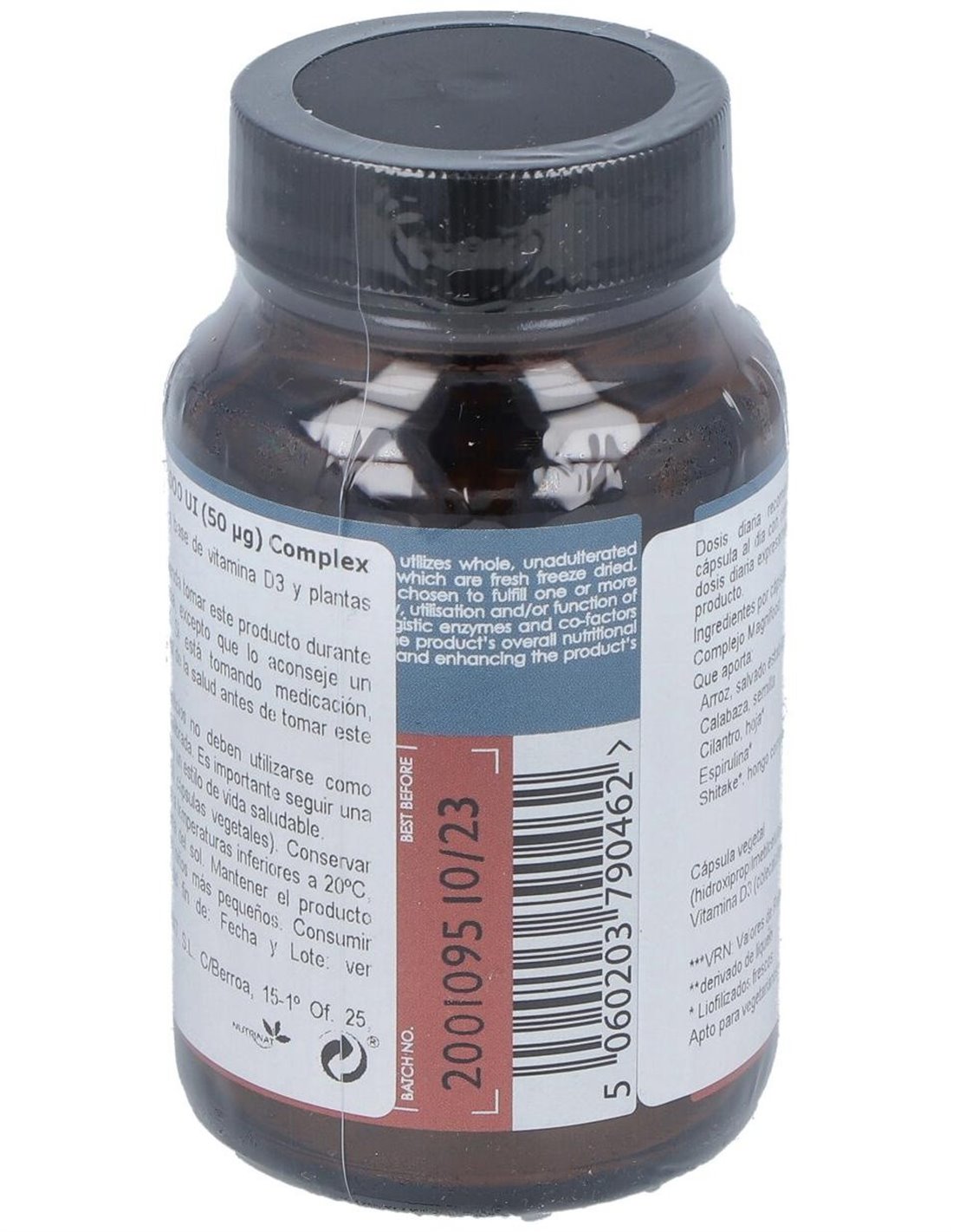 La vitamina D tiene un papel reconocido en el mantenimiento de la homeostasis del calcio y la salud ósea. Apto para vegetarianos y veganos.