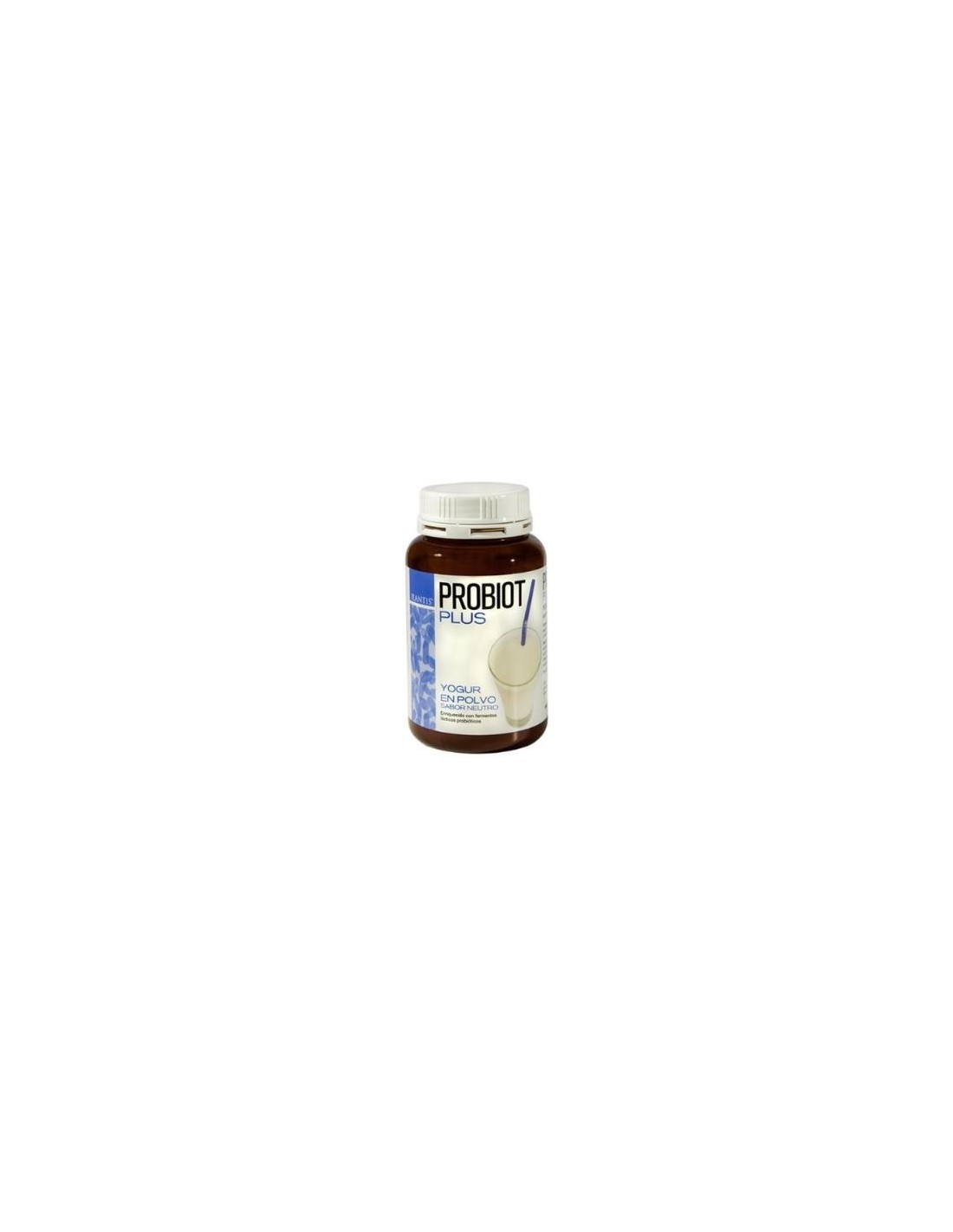 Probiot Plus es yogurt en polvo que contiene diferentes fermentos lácticos (Streptococcus thermophilus, Lactobacillus bulgaricus, Lactobacillus paracasei, Lactobacillus acidophilus, Bifidobacterium bifidum); cada toma, 20 gramos (2 cucharadas soperas en un vaso de agua), aporta más de 6000 millones de probióticos que ayudan a conseguir un equilibrio a nivel intestinal.Los fermentos lácticos tienen actividad probiótica, es decir que contribuyen al balance de la flora microbiana, y la suplementación de la alimentación con ellos mejora los procesos metabólicos relacionados con la digestión, mejorando la digestibilidad de los alimentos y favoreciendo la asimilación de nutrientes.Los Lactobacillus tienen su hábitat en el intestino delgado donde intervienen en la función digestiva favoreciendo la digestión de las proteínas, los Bifidobacterium son los pobladores mayoritarios del intestino grueso y son antagonistas del síndrome del colón irritable, combaten el estreñimiento severo y estimulan el sistema inmunitario, finalmente los Streptococcus acidifican el medio intestinal y detienen el crecimiento de patógenos e inhiben su adhesión combatiendo así las infecciones por levaduras y las diarreas de origen microbiano.Probiot Plus con un agradable sabor se puede consumir a cualquier hora aunque se recomienda su toma a la hora del desayuno sin olvidar que es el complemento ideal en dietas hipocalóricas, dietas para patología digestiva e intestinal y dietas para el estreñimiento.Ingredientes:Yogur desnatado en polvo, fructosa, espesante (almidónde maíz), fermentos lácticos probióticos (Streptococcus thermophilus,Lactobacillus bulgaricus, Lactobacillus paracasei, Lactobacillus acidophilus,Bifidobacterium bifidum), antiaglomerante (dióxido de silicio).Modo de empleo:Tomar 2 cacitos dosificadores (aprox. 20 g) en un vaso de agua, leche o zumo, remover y una vez preparado tomar. Ideal para desayunos aunque se puede tomar a cualquier hora del día.Presentación:Envase de 225 gramos sabor neutro.Recomendaciones y advertencias:No contiene gluten.