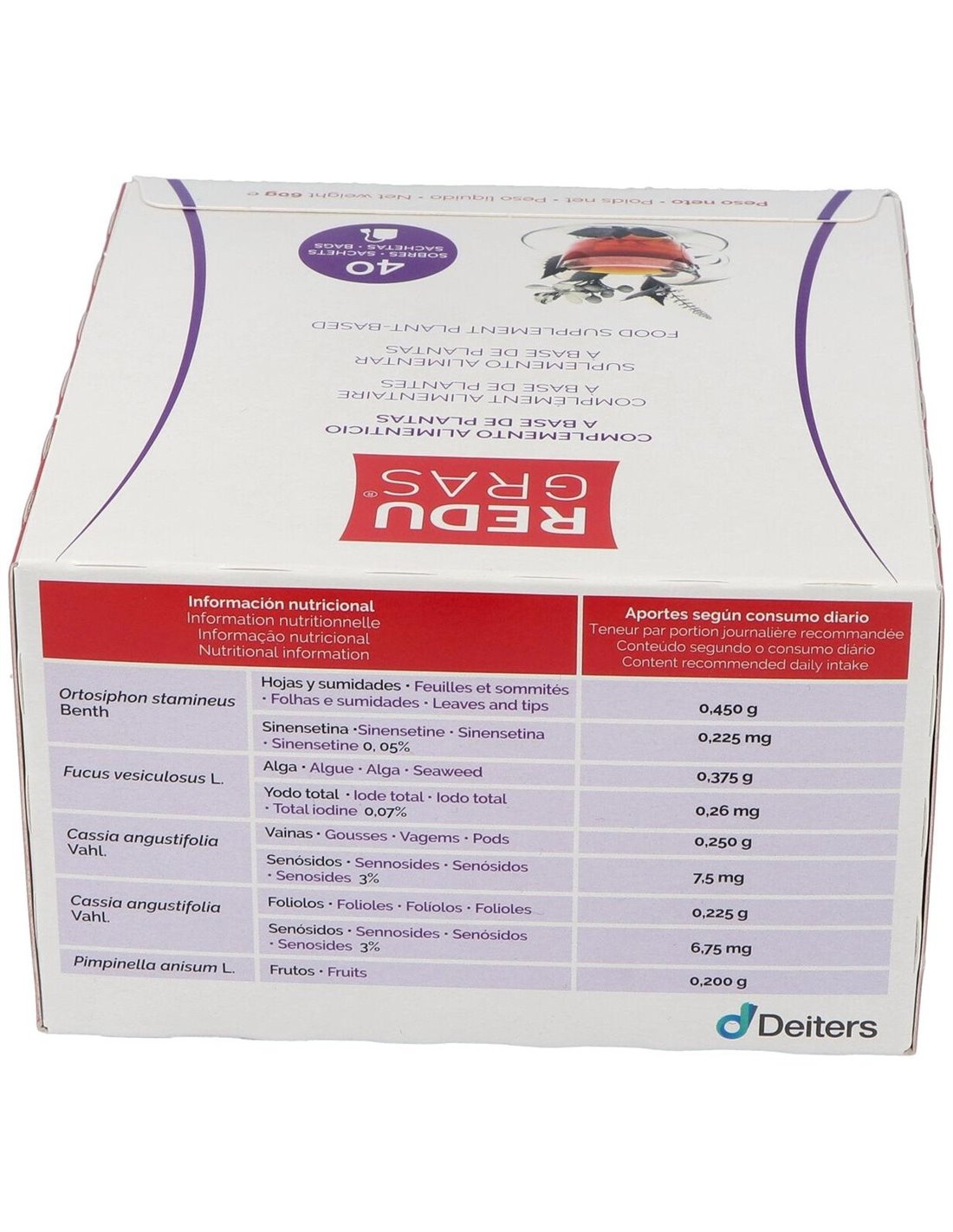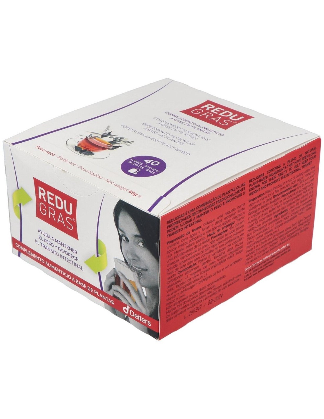 Redugras Ca 40Sbrs de Deiters es un suplemento dirigido a personas que buscan apoyar el control de peso, formulado para contribuir a la regulación del metabolismo y la reducción de grasa corporal.