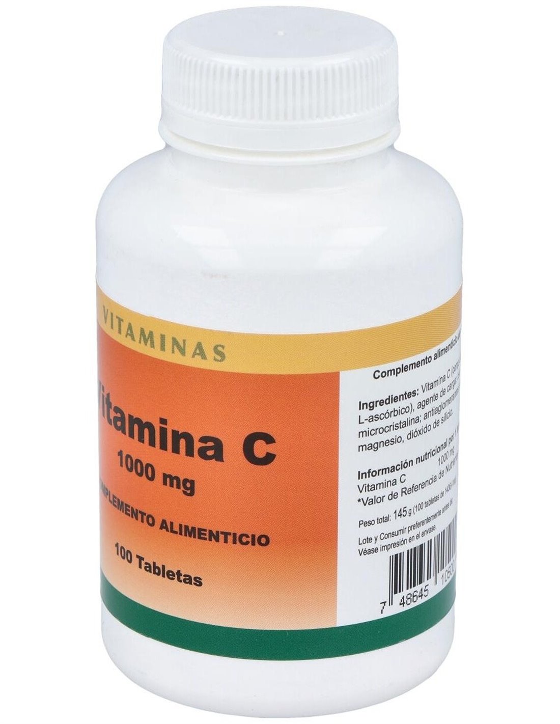 Por 1 comprimido: Vitamina C ... 1000 mg. Aditivos con función tecnológica: estearato de magnesio, dióxido de silicio, croscarmelosa de sodio, fosfato de calcio, ácido esteárico.