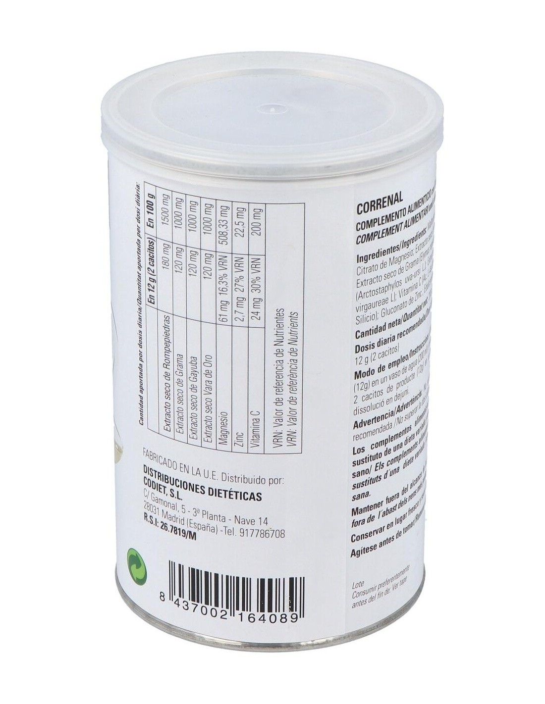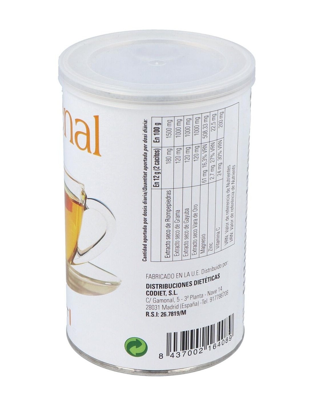 Extracto seco de: Grama, Rompepiedras, Gayuba, Vara de oro, Citrato de Magnesio, Vitamina C y Zinc.