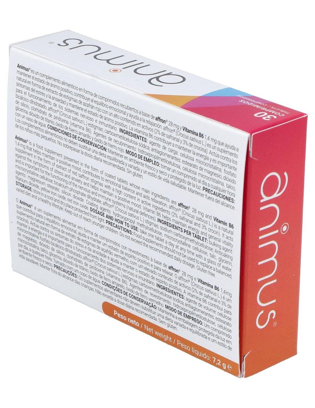28 mg de affron® y vitamina B6 (1,7 mg piridoxina HCI 82,27% equivalente a 1,4 mg de vit.B6)