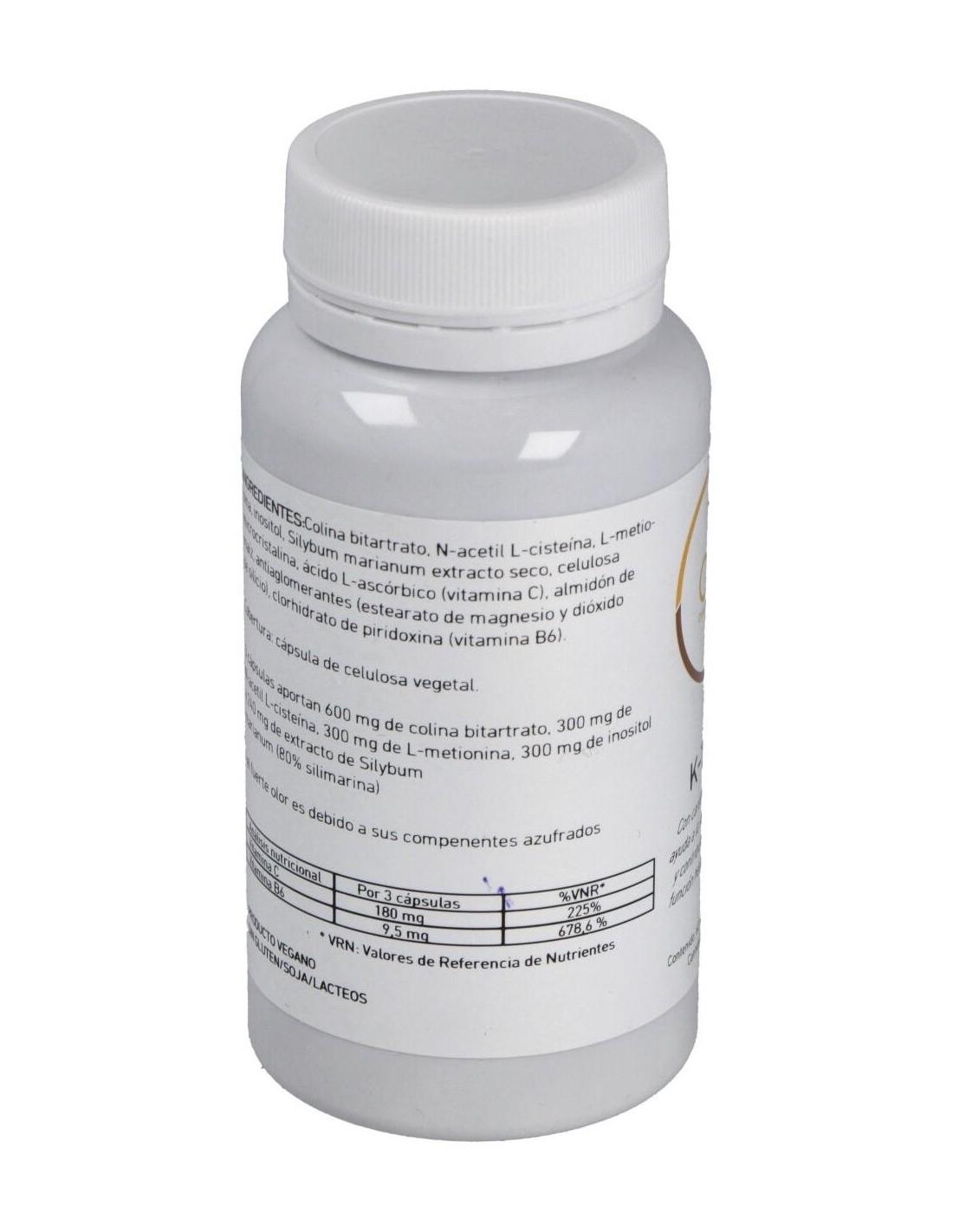 Por cápsula: Colina citrato 200 mg, Inositol 100 mg, N-Acetil-cisteína 100 mg, L-Metionina 100 mg, Silimarina 80 mg, Vitamina C 60 mg, Vitamina B6 (piridoxina) 15 mg.