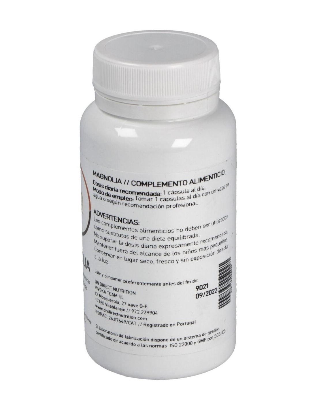 Complemento alimenticio a base de extracto de magnolia. La corteza de la magnolia (Magnolia officinalis) es de composición compleja y muy aromática, los ingredientes activos más destacados son el Magnolol y el Honokiol, dos compuestos polifenólicos que son responsables en gran parte de algunas de las propiedades que se le atribuyen, como por ejemplo la ansiolítica.