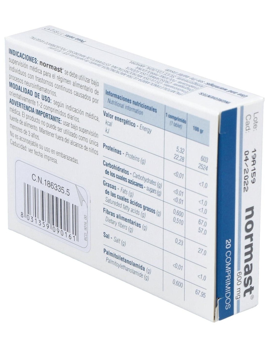Palmitoiletanolamida ultra-micronizada (PEA-um), celulosa microcristalina, estearato de magnesio, polisorbato vegetal, croscarmelosa sódica, polivinil pirrolidona, sílice coloidal, anhidra.