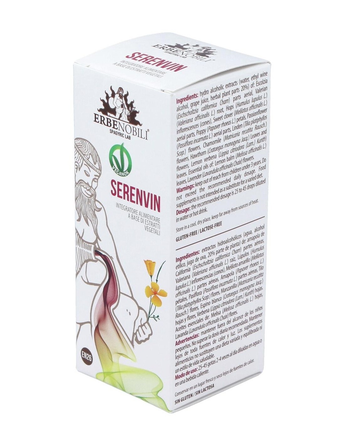 Serenvin Compost Insomnio 50Ml de Erbenobili es un complemento natural para personas con dificultades para conciliar el sueño, que ayuda a favorecer el descanso mediante una fórmula basada en ingredientes vegetales.