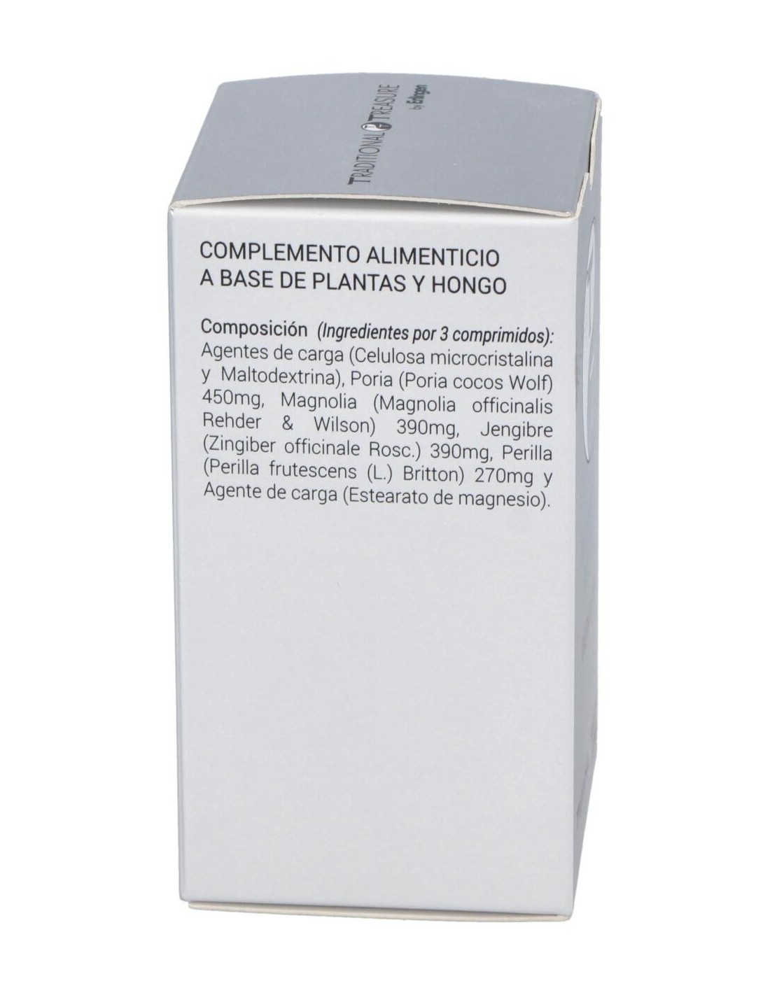 Agentes de carga (Celulosa microcristalina y Maltodextrina), Poria (Poria cocos Wolf) 450 mg, Magnolia (Magnolia officinalis Rehder & Wilson) 390mg, Jengibre (Zingiber officinale Rosc.) 390 mg, Perilla (Perilla frutescens (L.) Britton) 270 mg y Agente de carga (Estearato de magnesio).