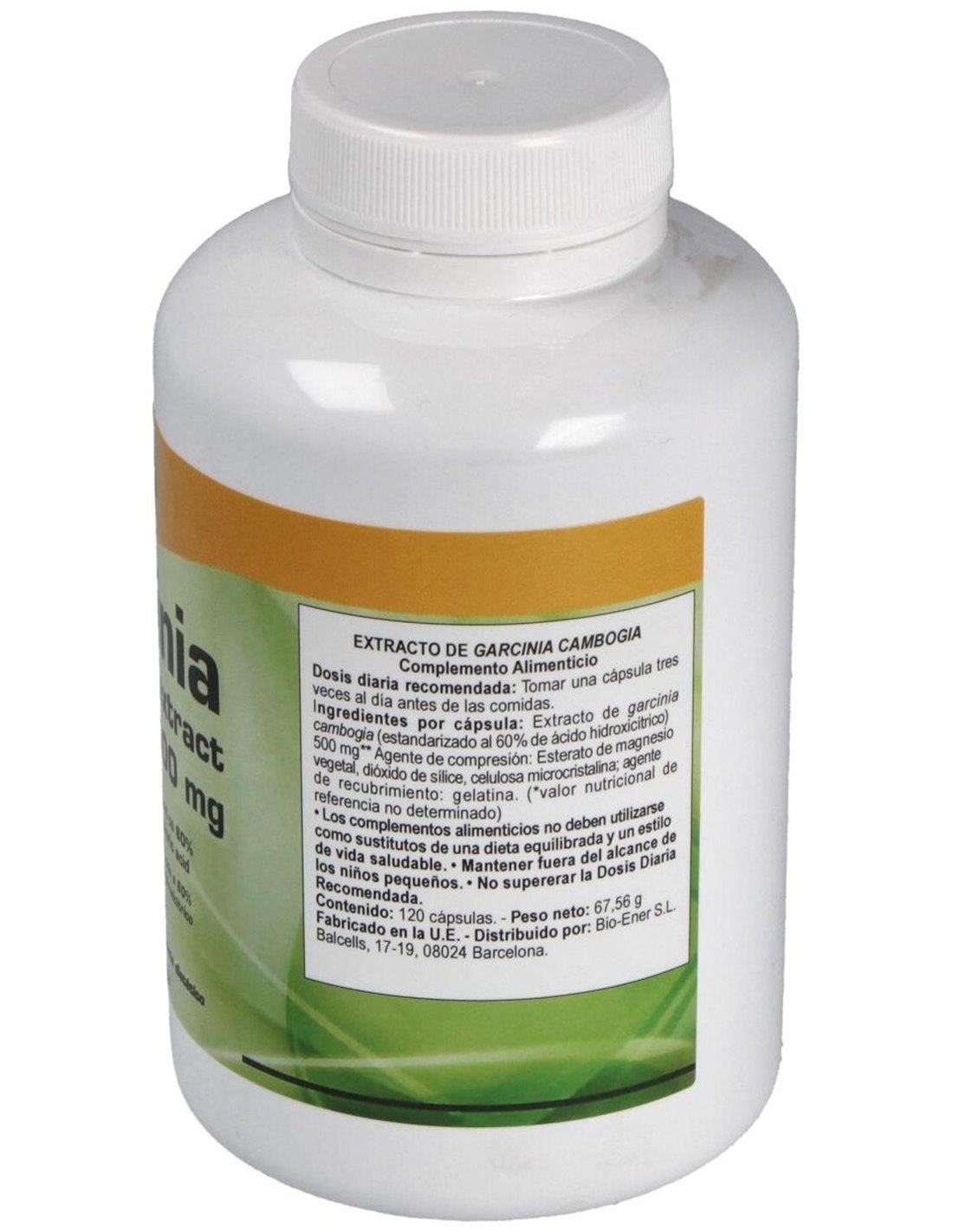 Por 1 cápsula: Extracto de Garcinia Cambogia.......500 mg. (Contiene un 60% de ácido hidroxicitrico (HCA). Aditivos con función tecnológica: celulosa microcristalina, gelatina, estearato de magnesio vegetal, dióxido de silicio
