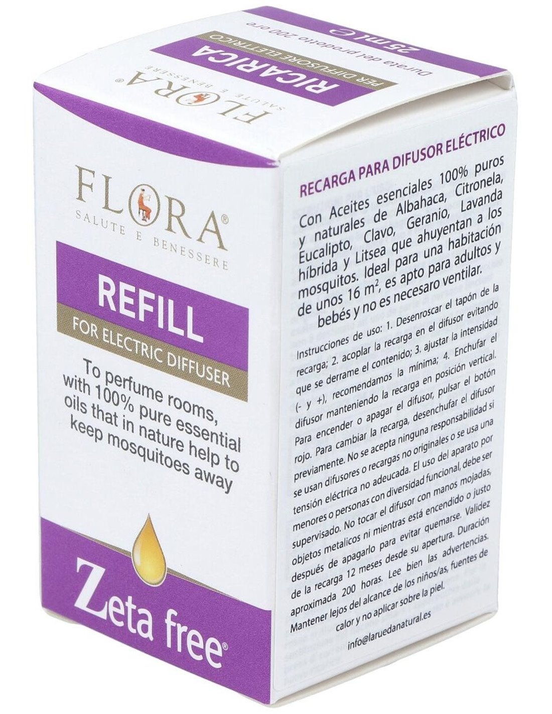 Aceites esenciales 100% puros de Citronella*,, Eucalipto, Geranio, Lavanda**, Basilico, Litsea, Clavo.