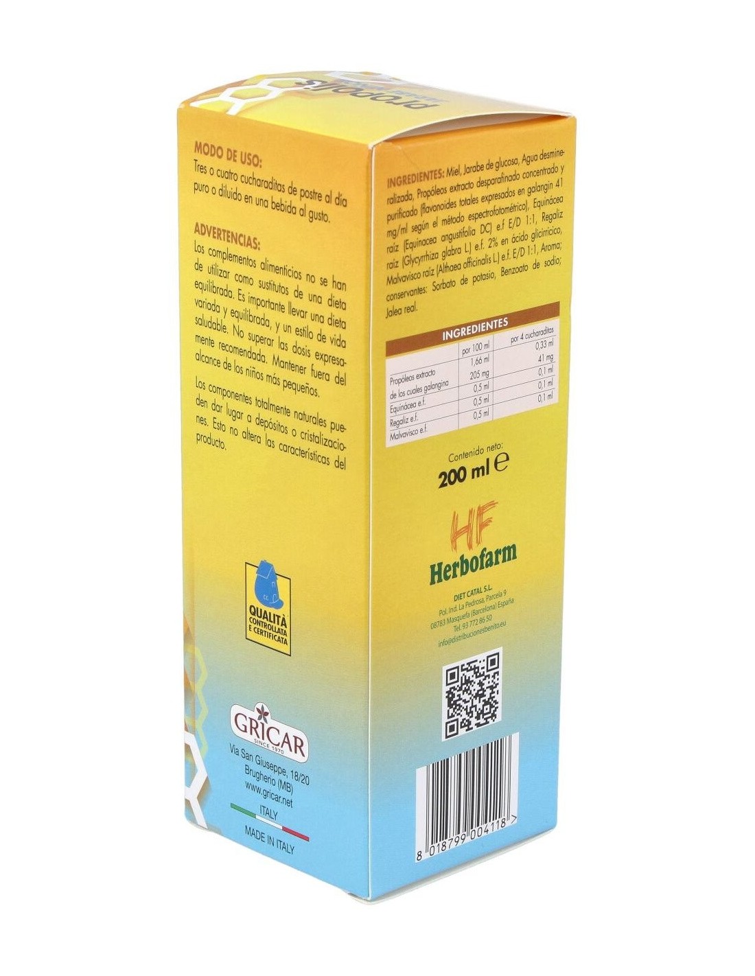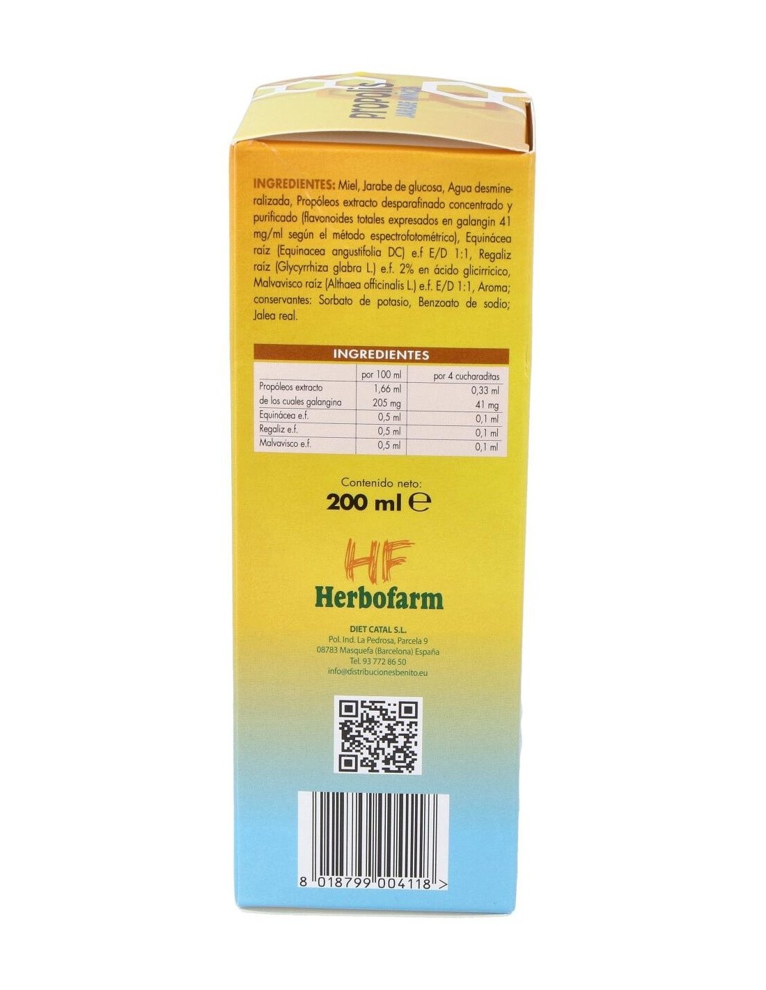 Própolis extracto de los cuales galangina, Equinácea e.f., Regaliz e.f., Malvavisco e.f., Aroma frambuesa, Jalea Real.