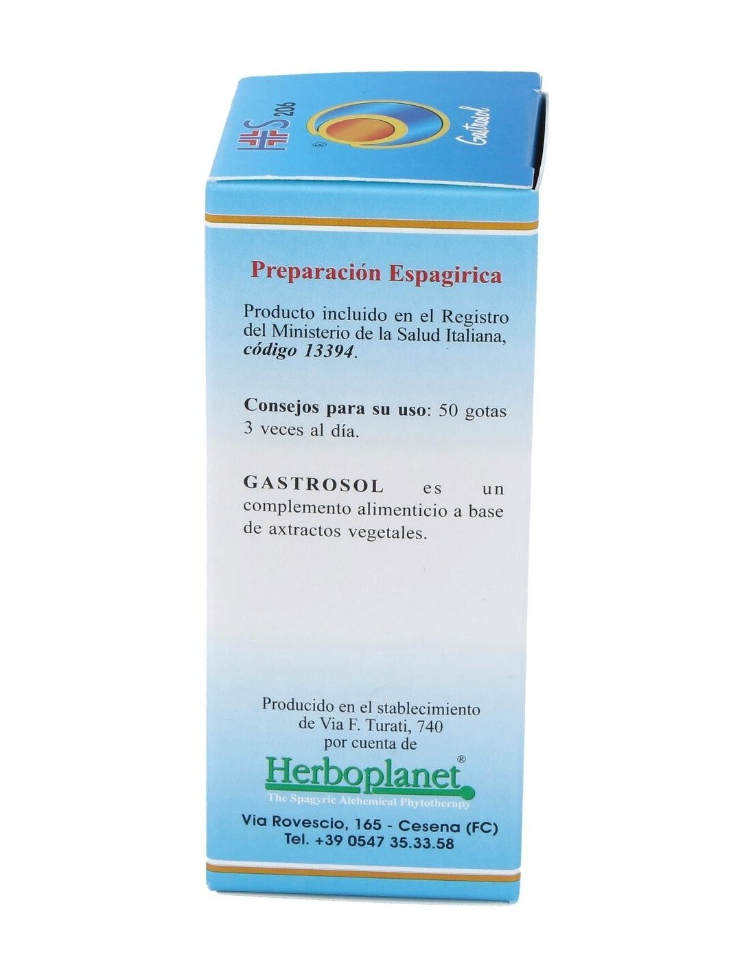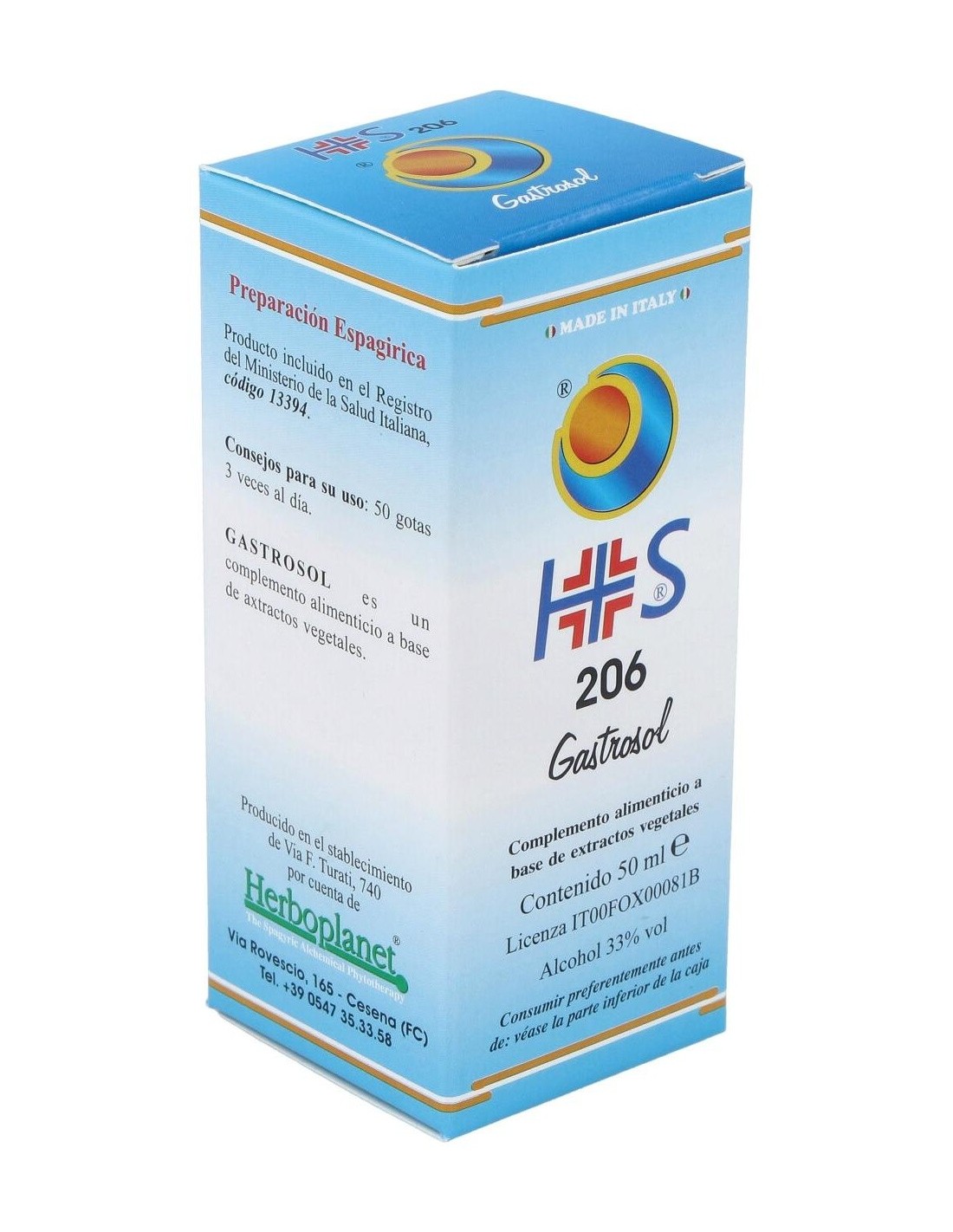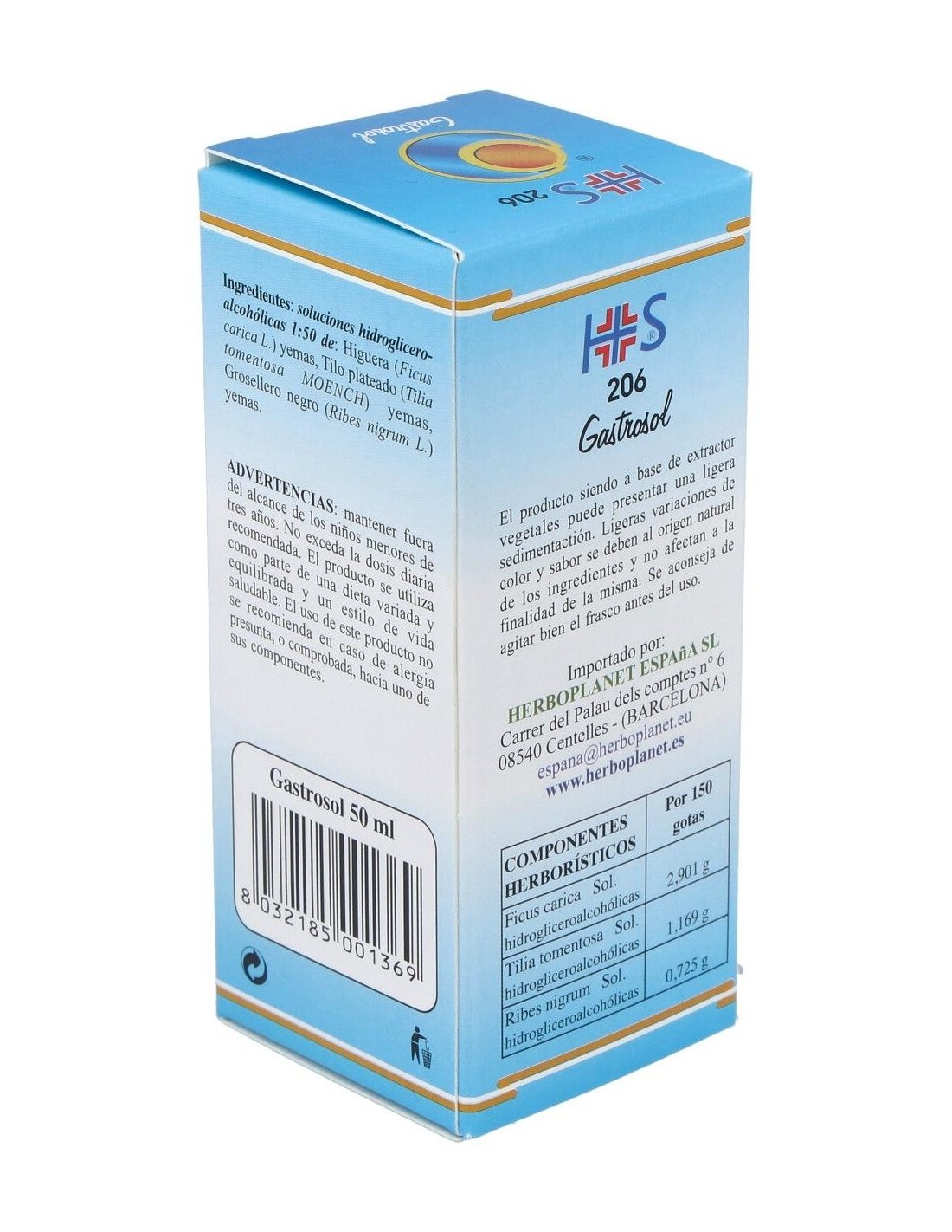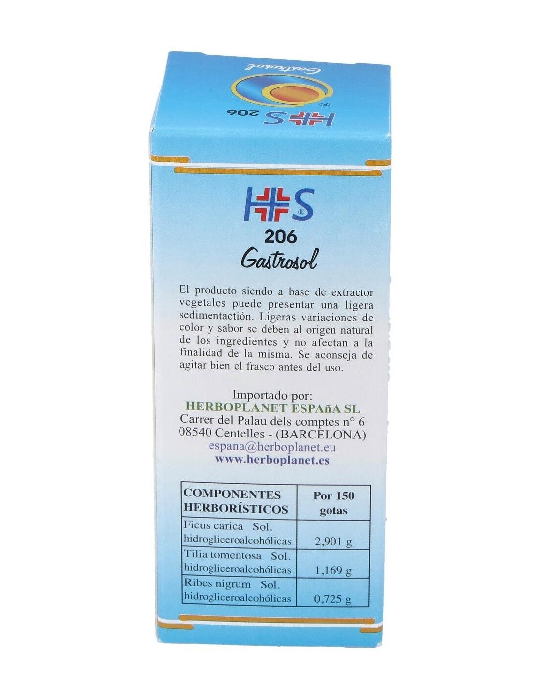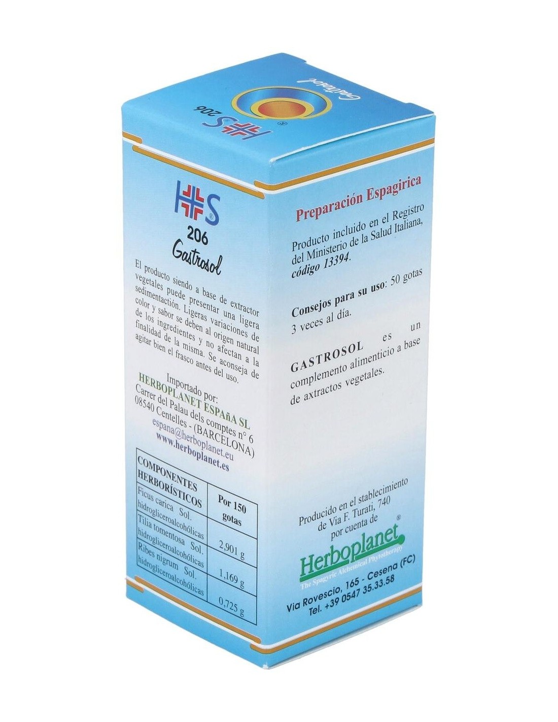 Gastrosol de Herboplanet es un complemento alimenticio a base de principios vegetales conocidos por sus efectos beneficiosos, capaz de favorecer las funciones normales del aparato digestivo.Gastrosol de Herboplanet esta recomendado en casos de gastritis, úlcera gástrica y duodenal, náusea matutina, distonía neurovegetativa, disfagias esofágicas, hernias diafragmáticas. Espasmofilia.Ingredientes por 150 gotas:MSA (Macerado Espagírico-Alquímico de Solanimus R.E. 1/50) de: Higuera (Ficus carica) yemas 2,901 g, Tilo plateado (Tilia tomentosa) yemas 1,169 g, Grosellero negro (Ribes nigrum) yemas 0,725 g.Modo de empleo:Tomar 30-40 gotas, en poca agua, 15 minutos antes de las 3 comidas principales.Presentación:Envase de 50 ml.