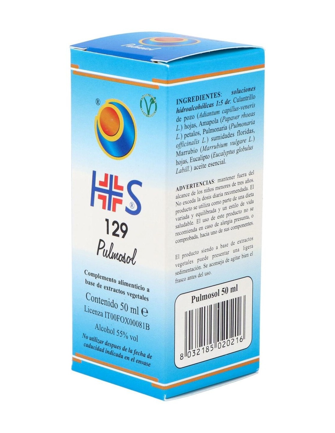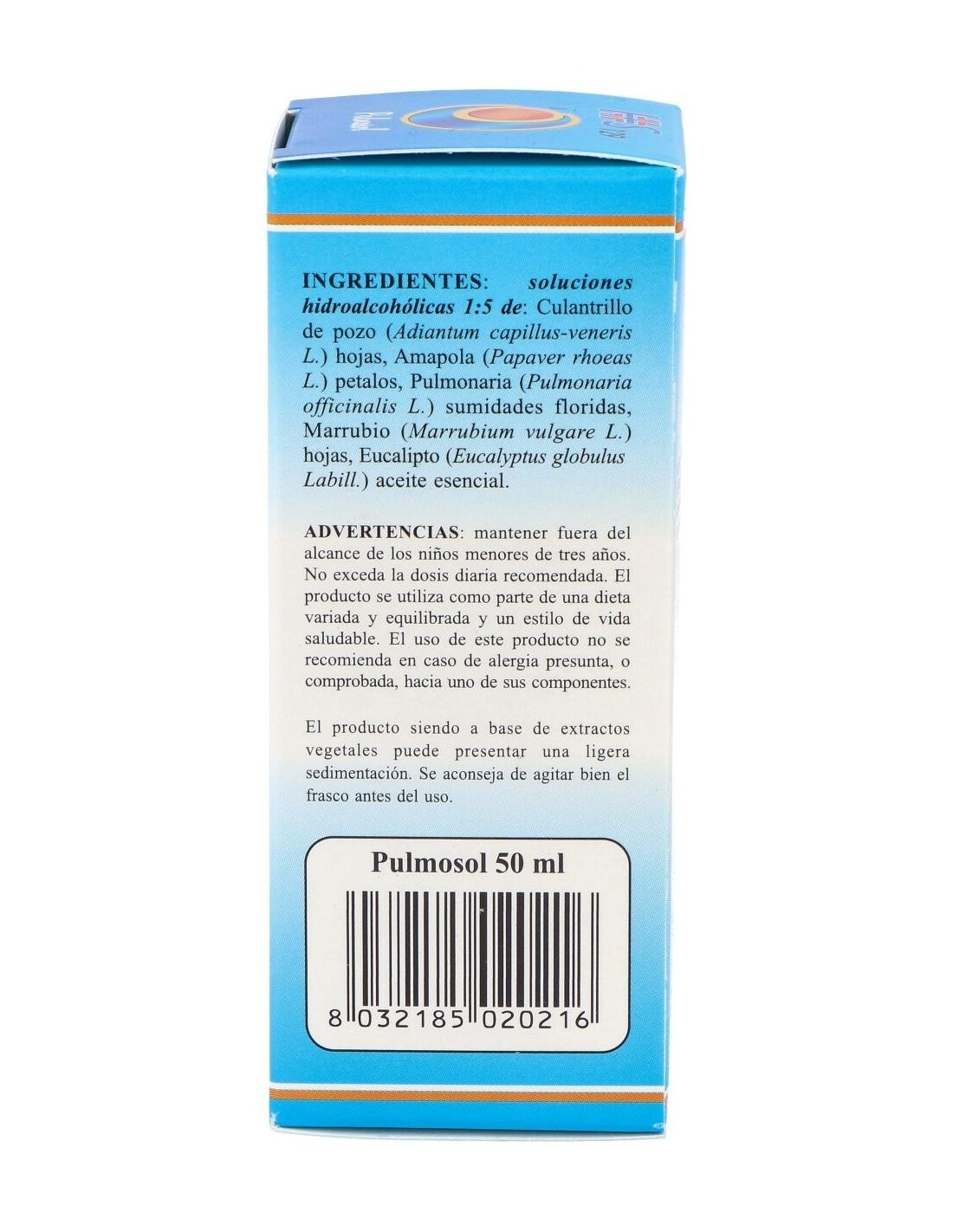 Ingredientes por 150 gotas:TSA (Tintura Espagírico-Alquímica de Solanimus R.E. 1/5) de: Culantrillo de pozo (Adiantum capillus-Veneris L.) hojas 2,52 g, Amapola (Papaver rhoeas L.) petalos 2,205 g, Pulmonaria (Pulmonaria officinalis L.) sumidades floridas 0,21g, Marrubio (Marrubium vulgare L.) hojas 0,21g QSPC (QuintaEsencia Espagírica de Paracelso Canónica) de Eucalipto (Eucalyptus globulus Labil.) aceite esencial 0,105 g.Modo de empleo:Tomar 20-30 gotas 3 veces al día en poca agua. Durante las crisis: tomar 20-30 gotas directamente en la lengua.Presentación:Envase de 50 ml.