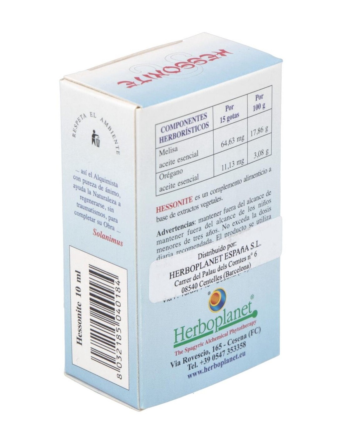 Hessonite es un complemento alimenticio a base de extractos vegetales. Se compone de Melisa es útil para la relajación, el bienestar mental y el tono de ánimo normal. Y también Orégano contribuye a la función digestiva, a la regular motilidad gastrointestinal ya la eliminación de gases. Contribuye a la fluidez de las secreciones bronquiales y tiene un efecto balsámico.El Orégano refuerza el sistema inmunitario, la Melisa es específica para la regulación del sistema nervioso autónomo. El cobre alquímico es el metal de Venus. Venus es el amante inseparable de Marte que está asociado al hierro. Rahu es a su vez asociado a Saturno que se exalta en Libra (control hidrosalino), signo de Venus (riñones) del que su domicilio diurno es Acuario. En la astrología india Rahu es señor de Acuario (saturno) y sus piedras son la Hessonita o el Ágata.PSIQUE: Promueve la necesidad de introspección, permite una visión tranquila del mundo y ayuda a encontrar dentro de si la respuesta a las propias necesidades. Eso, a la vez, facilita el análisis crítico de la propia experiencia, promoviendo el crecimiento espiritual, además de la estabilidad y el realismo. Hace sentir al sujeto protegido y seguro, lo vuelve menos tenso y lo coloca en posición de soportar mejor las influencias externas.Ingredientes por 10 ml:QSA (Quintaesencia Espagírica Alquímica de Solanimus) de Melisa (Melissa officinalis L.) 8,4 ml, QSA (Quintaesencia Espagírica Alquímica de Solanimus) de Orégano (Origanum vulgare L.) 1, 4 ml. Cobre alquímico 0,1 ml. Hessonita alquímica 0,1 ml.Alcohol 80% vol.Modo de empleo:Tomar 5 gotas directamente en la lengua 3 veces al día, como alternativa, sobre azúcar o miel.Presentación:Envase de 10 ml.