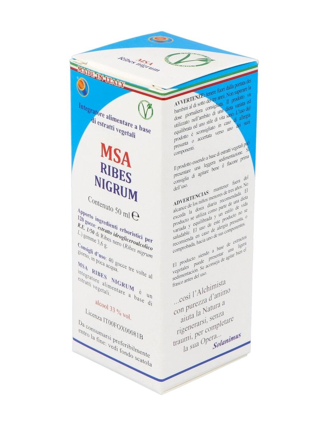 El Macerdo Espagírico-Alquímico de RIBES NIGRUM se puede utilizar cuando hay una inflamación. Disminuye la producción de IgE, reduce la quimiotaxis leucocitaria y tiene éxito de frenar la liberación de histamina y quininas por los mastocitos. Su acción es principalmente a nivel de las suprarrenales, donde estimula la corteza para liberar las sustancias que tienen una fuerte propiedad anti-inflamatoria y anti-alérgica, Por eso se dice que el Ribes nigrum gemmoderivato tiene una acción cotisone similar, pero sin tener su toxicidad.Síntesis Psíquica: El tipo Ribes es generalmente un tipo espontáneo, que aparece como una persona más joven de lo que realmente es, que no le gusta mucho ni el calor ni el frío, pero prefiere la frescura y sombra. Por lo general es un tipo ahorrativo, que tiene dificultades para dar.Ingredientes por 120 gotas:Solución hidro-gliceroalcohólica Espagirica con una relación de extracción de 1:50 (R.E. 1/50) de Grosellero negro (Ribes nigrum L.) yemas 3,6 g.Modo de empleo:Tomar 25 a 40 gotas en un poco de agua, 3 veces al día.Presentación:Envase de 50 ml.