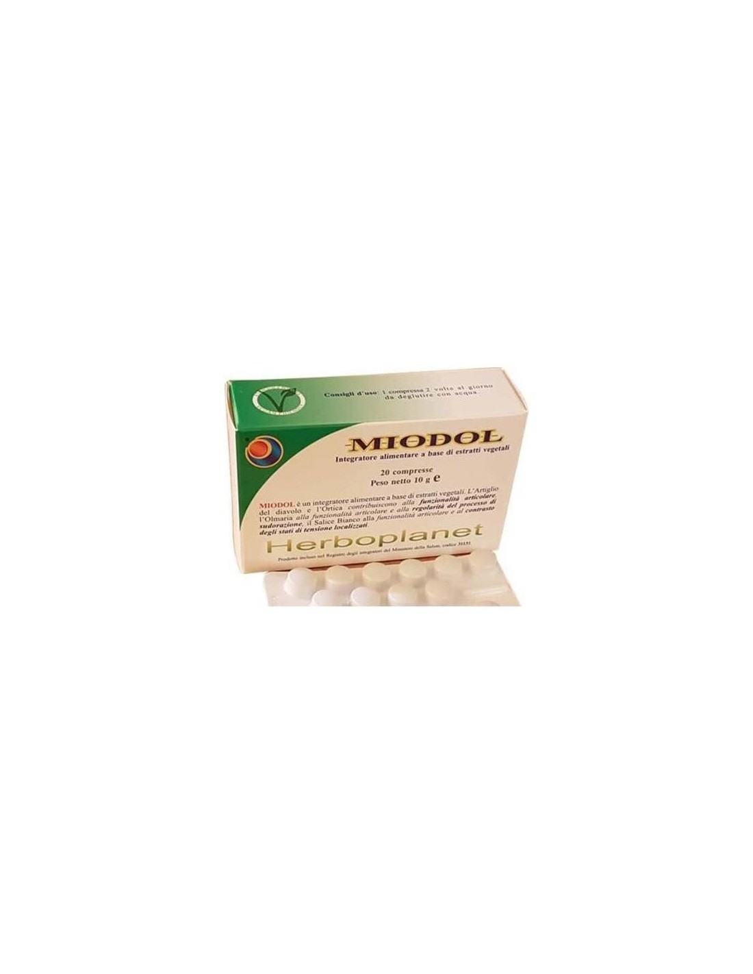 Miodol de Herboplanet es un complemento alimenticio a base de principios vegetales desde siempre conocidos por sus beneficiosos efectos, capaces de favorecer las normales funciones del sistema osteoarticular. El harpagofito y la ortiga contribuyen a la función de las articulaciones. El sauce blanco contribuye al contraste de estados de tensión localizados. La ulmaria contribuye a regularizar el proceso de sudoración.Miodol de Herboplanet es un producto recomendado en casos de dolores reumáticos, artrosis, artritis, mialgia, ciática, cefalea tensional (cefalea por contracción muscular), fiebre.Principios activos: