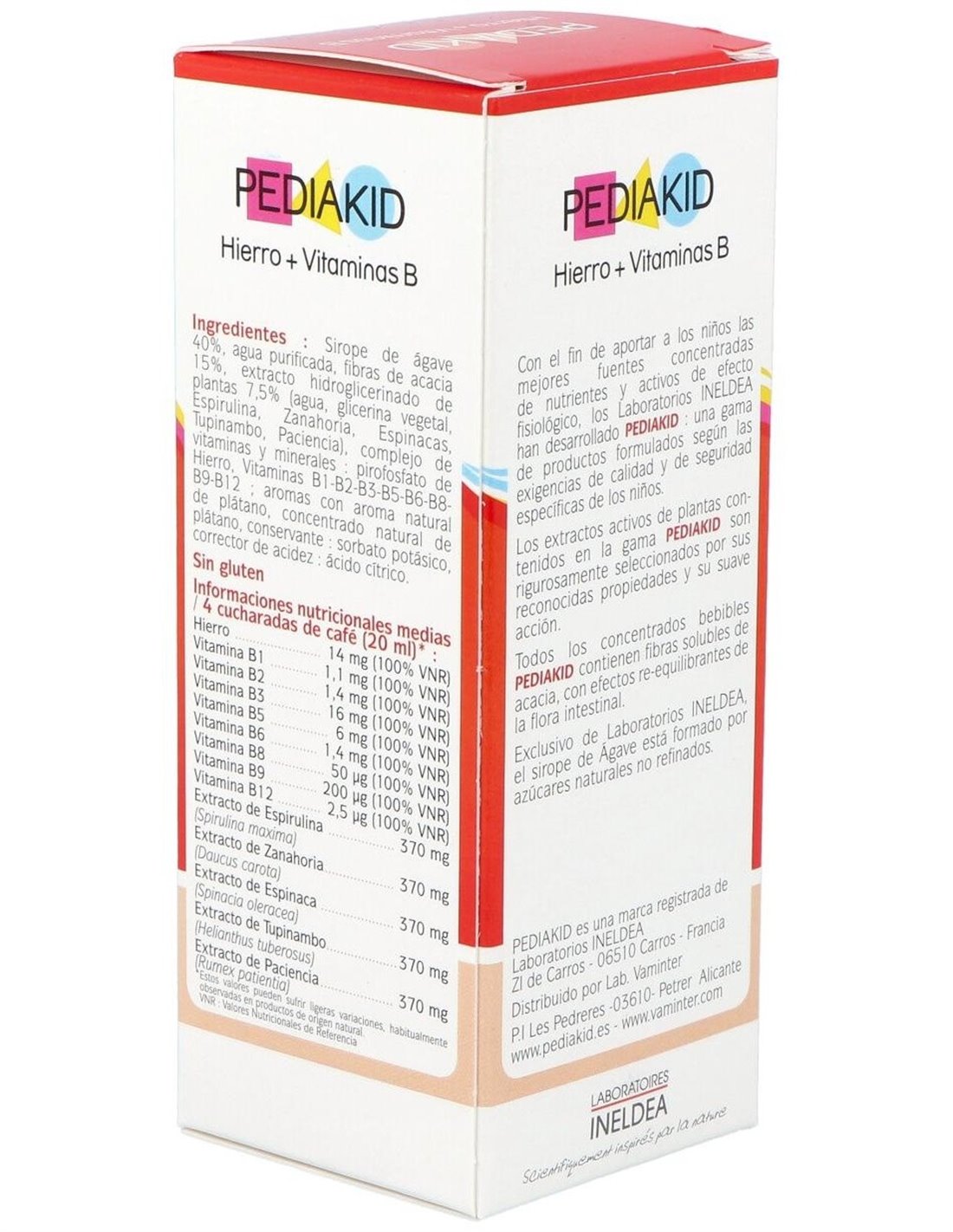 Optimiza la ingesta en Hierro. Rico en hierro y vitaminas B, que ayudan a reducir la fatiga. El hierro ayuda a transportar oxígeno a las células. Una tez pálida, fatiga, puede ser el primer signo de deficiencia de hierro. Si los niños son candidatos a esta deficiencia, los adolescentes tienen un riesgo especialmente alto.Pediakid ® Hierro + Vitamina B, optimiza el consumo de hierro para luchar contra la fatiga. Su fórmula perfectamente asimilable con hierro microencapsulado para optimizar el aporte de hierro en niños sin sabor o problemas de olor, y sin alteración del sistema digestivo. Las vitaminas del grupo B, trabajan sinérgicamente para promover la absorción y utilización del hierro por el organismo.Pediakid ® Hierro + Vitamina B también contiene Spirulina, zanahoria, espinaca, tupinambo y Paciencia, tónicos fitonutrientes.El Néctar de Agave está recomendado especialmente para los niños, ya que está hecha de azúcares naturales, sin refinar de bajo indice glucémico. Las fibras de acacia potencian los beneficios del agave. Tienen una actividad prebiótica favorable para el intestino y la fortaleza del organismo. Composición activa por 20 ml:
