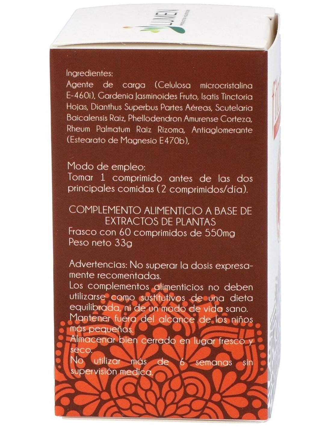 Gardenia Jasminoides (frutos), Coptis chinensis (rizoma), Lophatherum Gracile (herba), Scutellaria Baicalensis (raíz), Phellodendron amurense (córtex), Rheum palmatum (raíz y rizoma).