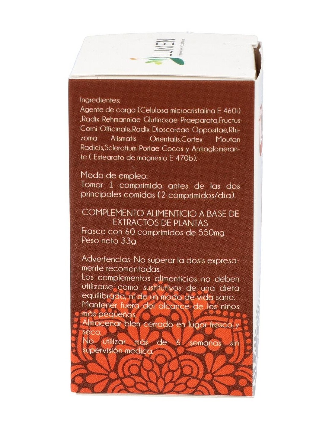 Radix Rehmannia Glutinosa preparada, Fructus Corni officinalis, Radix Dioscorea Opposita, Rhizoma Alismatis Orientalis, Cortex Moutan Radicis, Poria Cocos.