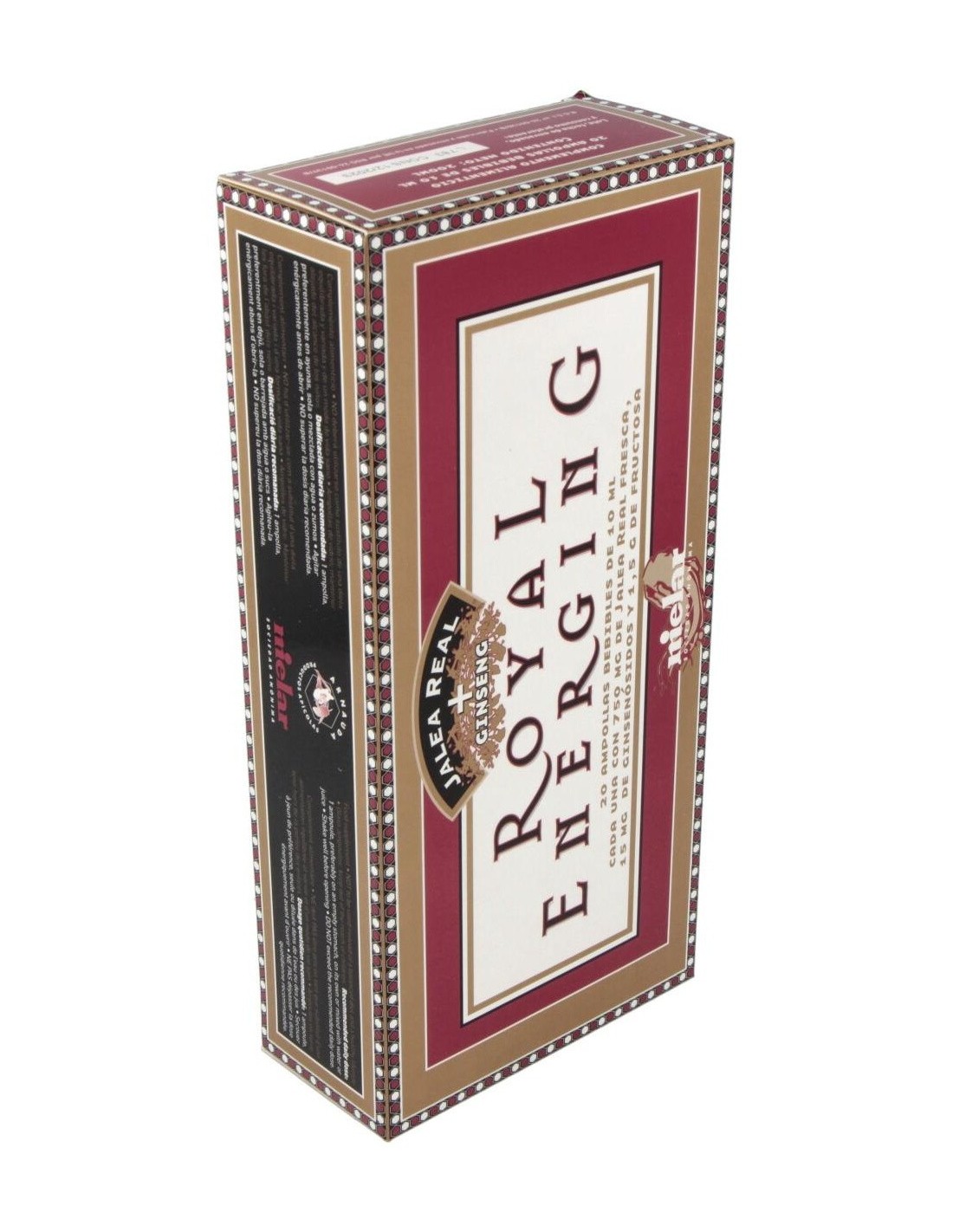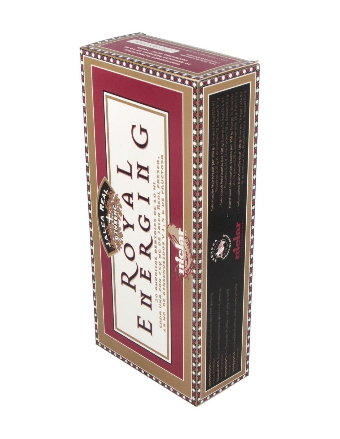 Combina las características de Jalea Real y Ginseng. Es el complemento dietético ideal, un agradable y potente combinado de energía y vitalidad que favorecerá una vida más plena e intensa.