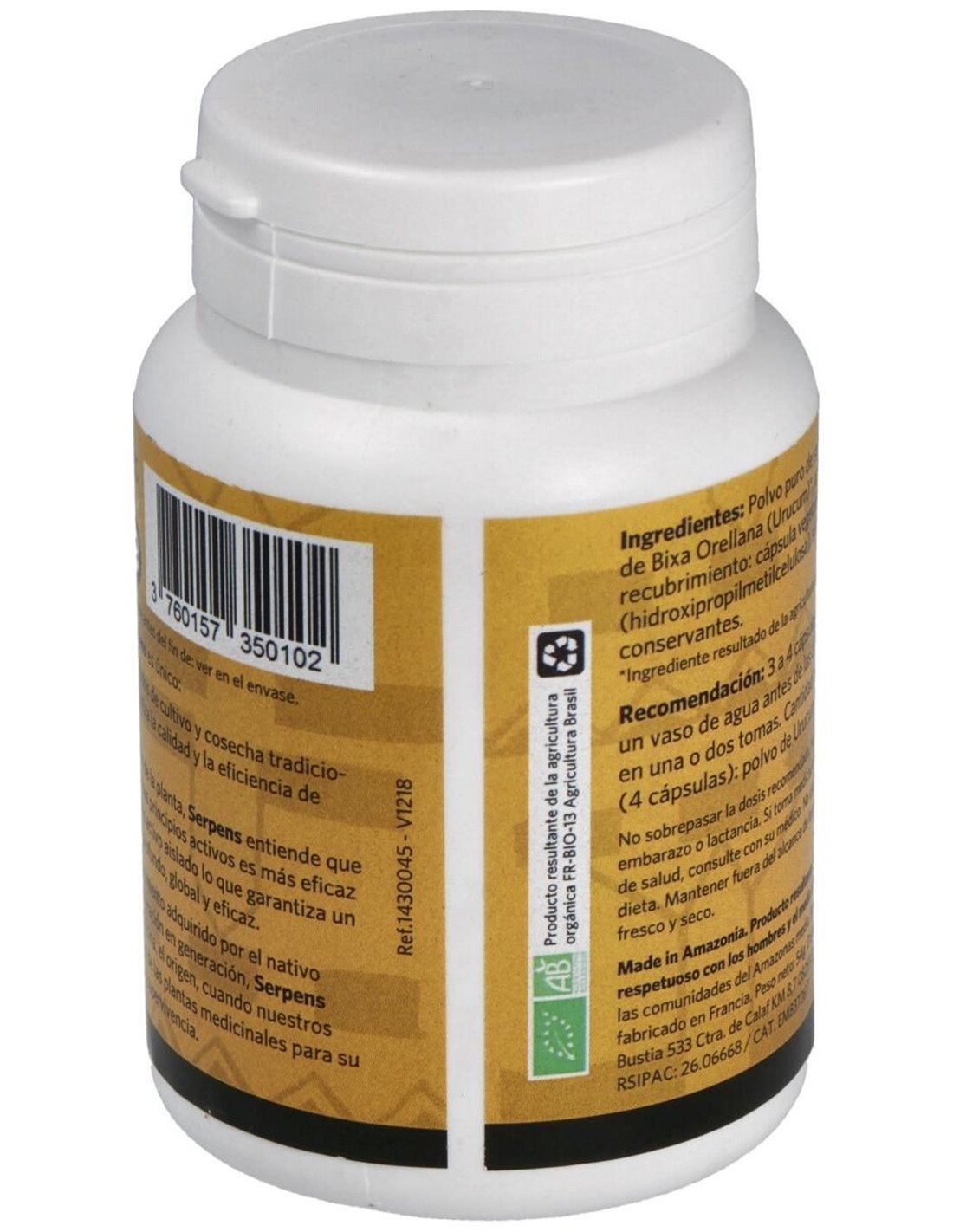 Polvo puro de semillas de Bixa Orellana (Urucum)*................ 1600 mg