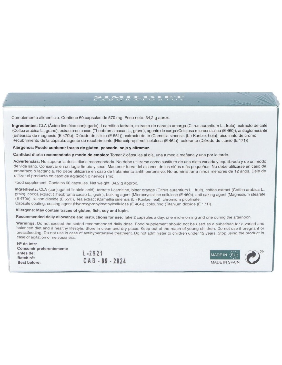 ácido linoleico conjugado (CLA), L- carnitina, extracto de té verde, extracto de café verde, extracto de cacao, extracto de citrus aurantium, picolinato de cromo.