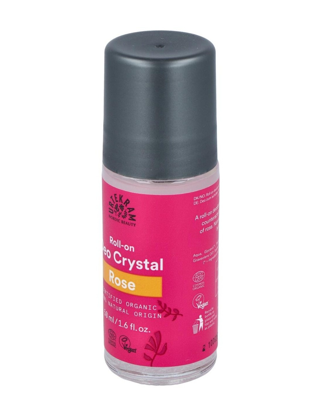 Desodorante cristal con aroma de rosas en práctico roll-on. Las bacterias y el mal olor son una cosa del pasado gracias a la sal mineral natural. A la base desodorante del alumbre y se incorpora glicerina vegetal que cuida la piel y aceites de geranio rosa y citronella que ofrecen un aroma delicado a miles de rosas. COSMOS ORGANIC certificado por Ecocert Greenlife. Vegano. No testado con animales.