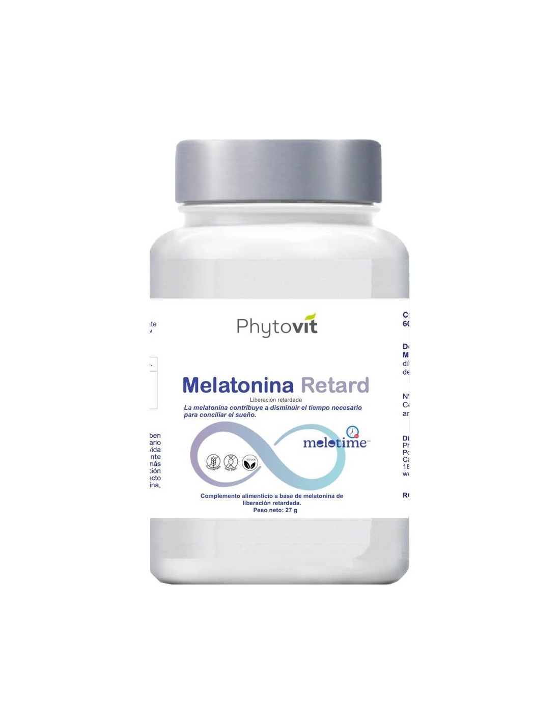 Melatonina Retard de Phytovit es de liberación lenta de 8 horas. Melotime es una melatonina única con un formato de liberación sostenida y controlada, la solución ideal para un suministro de melatonina constante, cronometrado y continuo para garantizar un sueño profundo y reparador.Esta melatonina de cronoliberación, se libera de forma sistemática durante 8 horas, alcanzando su pico máximo en las dos primeras horas y posteriormente liberándose de forma progresiva y controlada hasta el despertar natural de la persona.Composición activa por cápsula:4,2 mg de melatonina granulada de liberación retardada (melotime)(1,9 mg de melatonina).Modo de empleo:Tomar de 1 cápsula, 1 vez al día 30 minutos antes de dormir con medio vaso de agua o según prescripción profesional.Presentación:Envase de 60 cápsulas vegetales.Recomendaciones y advertencias:Producto vegano. No contiene gluten. No GMO.