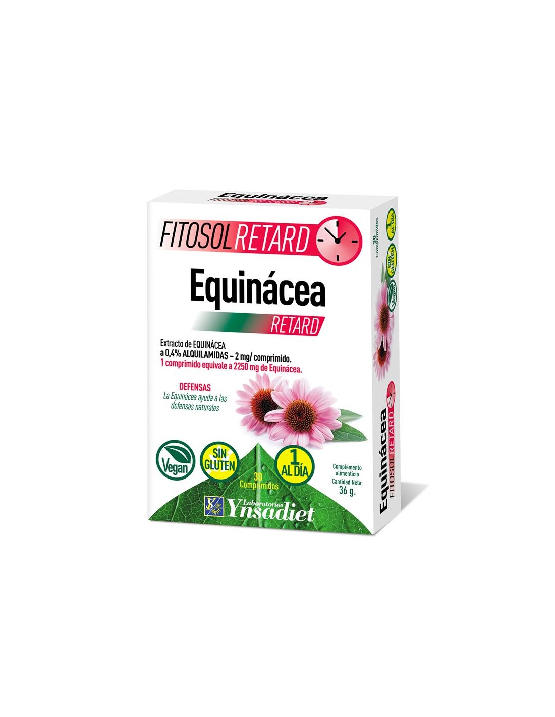 Agente de carga (Hidroxipropilmetilcelulosa, Celulosa, Fosfato dicálcico, Almidón de maíz, Hidroxipropilcelulosa, Carboximetilcelulosa sódica), Equinácea extracto seco (4,5:1) (Echinacea purpurea L. Moench, raíz): 500 mg, Antiaglomerantes (Monoglicéridos de ácidos grasos, Estearato magnésico, Dióxido de silicio).