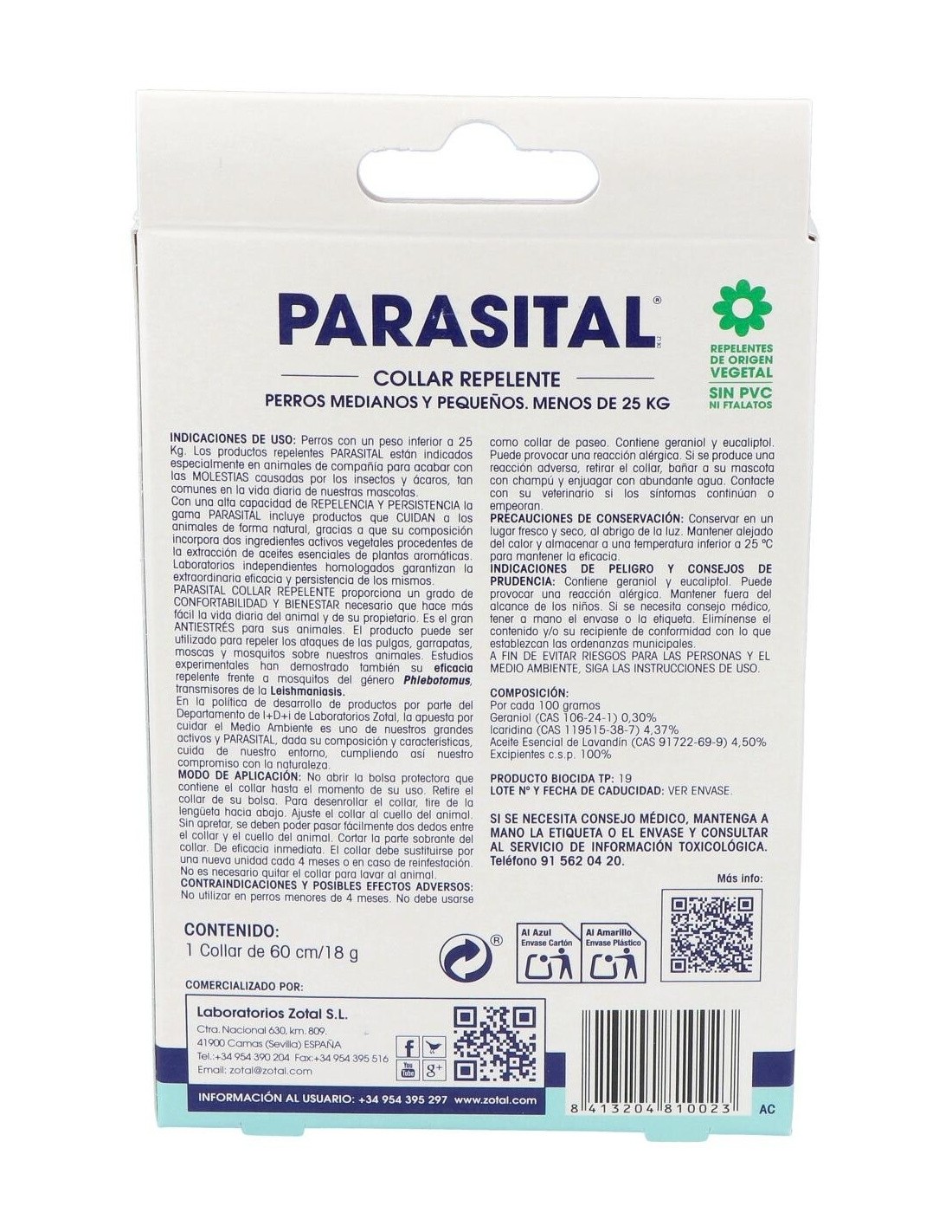 Parasital Collar Antiparasitario Perros Peq/Med de Zotal Vet
