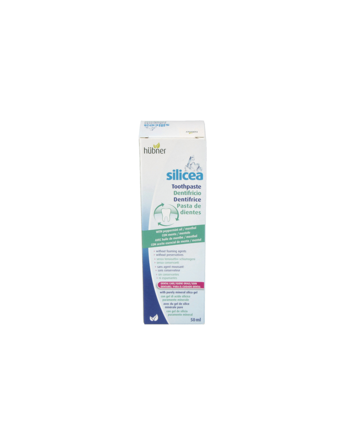 Silicea pasta: Ácido silícico coloidal 18%, fosfato dicálcico 24%, sal marina 4,5%, aceite de Menta piperita 1,6%, aceite de anís 0,25%, aceite de hinojo 0,01%, agua, sorbitol, glicerina, eugenol, celulosa.