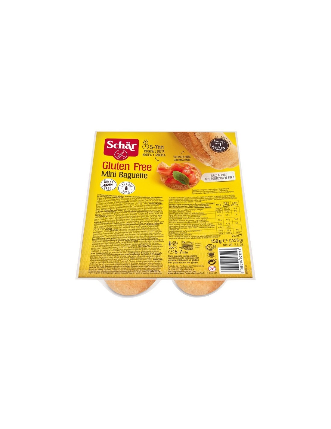 Ingredientes:Almidón de maíz, agua, masa madre (harina de arroz, agua) 19%, harina de arroz, fibras vegetales (psyllium, bambú), aceite de girasol alt